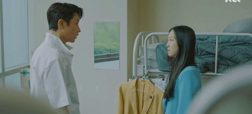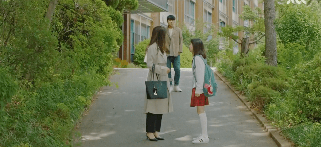 Ha-nee recalls a class assignment that she participated in back in 2019. She was to compare the genetic traits that she acquired from both of her parents. There were some things such as double eyelids and hair consistency that Ha-nee got from Ae-jung, but there were other traits like dimples that she assumes she must have gotten from her father. Although Ha-nee tried not to think about it too much, she was always curious as to who her father was and what he looked like. Fast forward to the present and Ha-nee receives her answer. Just as she’s getting reprimanded by Mr. Jang for fighting with the school bully, Dae-oh swoops in to rescue Ha-nee. He demands for Mr. Jang to let go of Ha-nee’s wrist and declares himself as Ha-nee’s father. Ha-nee is Dae-oh’s daughter (GO DAE-OH!!).