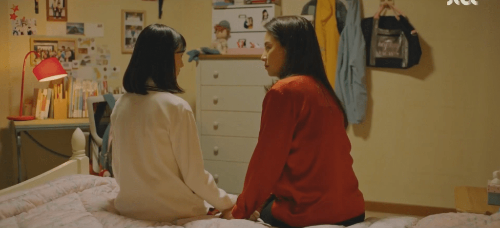 And there are. There are questions that Ha-nee has for her mother such as whether Ae-jung regrets having her or not. Ae-jung confidently answers that there are no regrets. If she were to go back and do it all over again, she would still have Ha-nee. Ae-jung apologizes for not telling Ha-nee sooner and she’s willing to tell Ha-nee everything that she wants to know. Ha-nee then grows curious about Dae-oh (who she refers to as ‘ahjusshi’). What about him? What is Ae-jung going to do about Dae-oh? Does Ae-jung still have feelings for him? Is that why she couldn’t bring herself to say anything to Ha-nee? Ha-nee states that she doesn’t want Dae-oh in their lives. If he left them in the first place, there’s a chance he could easily leave them again and that’s not something that Ha-nee wants to go through. She’s content with how things are at the moment with just her, Ae-jung, and Grandma. Ae-jung takes Ha-nee’s words into consideration and she listens to her daughter. Ae-jung is reminded of the time back in 2012 when Ae-jung promised to marry Ha-nee and stay with her forever. Nothing’s changed 8 years later and Ha-nee is all that Ae-jung needs. They give each other a warm hug and keep their promise.