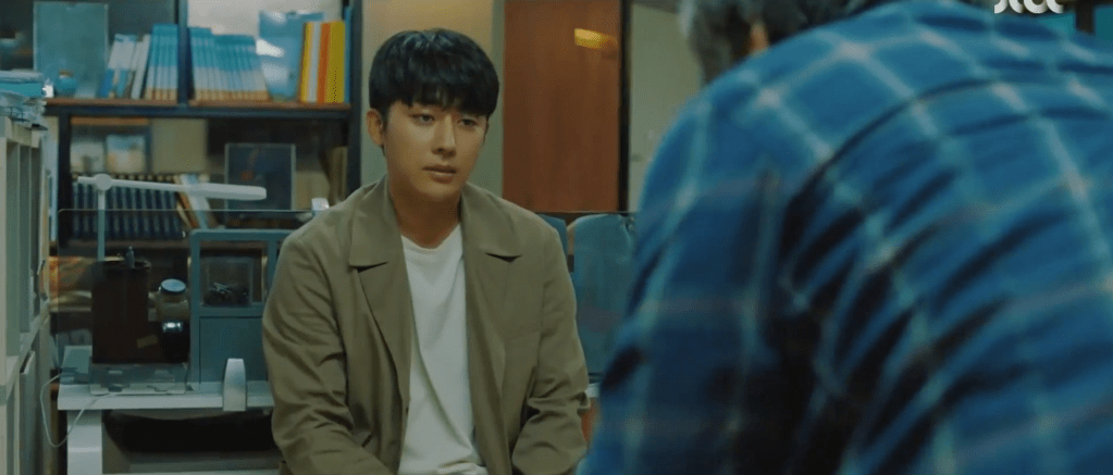 Dae-oh is thrown back to 2012 on the night that he and CEO Wang first met. He was out drinking at a restaurant and could care less about successfully becoming an author. All he could think and worry about was Ae-jung who his debut novel ‘Love is Nonexistent’ was based off of. On that same night and in the same place, CEO Wang sat not too far from Dae-oh and gave him an offer too good to decline. He offered the idea of doing a film adaptation on Dae-oh’s novel as a possible way to get Dae-oh to reunite with Ae-jung. If the movie is successful, Ae-jung would find out about Dae-oh and they would eventually meet again. Dae-oh signed the contract at that time in a desperate attempt to increase his chances of meeting with Ae-jung. Little did he know Ae-jung would be the one to take on the actual project itself many years later. And so Dae-oh gives CEO Wang’s words some thought later on that night at his house. Just like Ae-jung’s former boss mentioned, Dae-oh always missed Ae-jung this entire time.