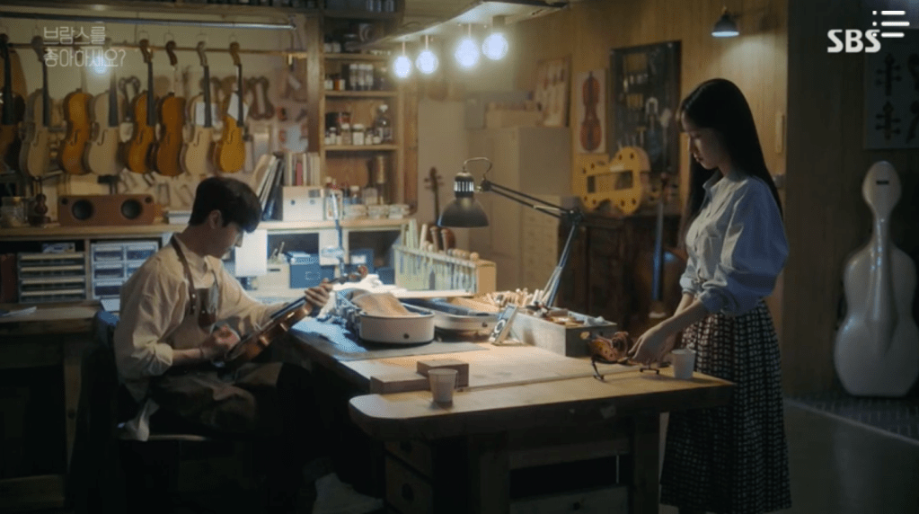 It’s the summer of 2013. Min-sung, Dong-yoon, and Song-Ah are all hanging out like usual at a restaurant. Both Dong-yoon and Song-Ah announce their violin plans right at the same time. Song-Ah plans on pursuing music by playing the violin while Dong-yoon is going to quit playing the violin. Min-sung can understand Dong-yoon’s plans to stop playing the violin in order to become a violinmaker, but she has trouble understanding Song-Ah’s wishes to pursue music after graduating with a business degree. She disproves of Song-Ah’s decision and knocks out after a few drinks. Dong-yoon feels quite the opposite and he voices his support for Song-Ah. He even volunteers to be her violin tutor as a former violinist himself and Song-Ah excitedly agrees. Aww, they’re both so cute.