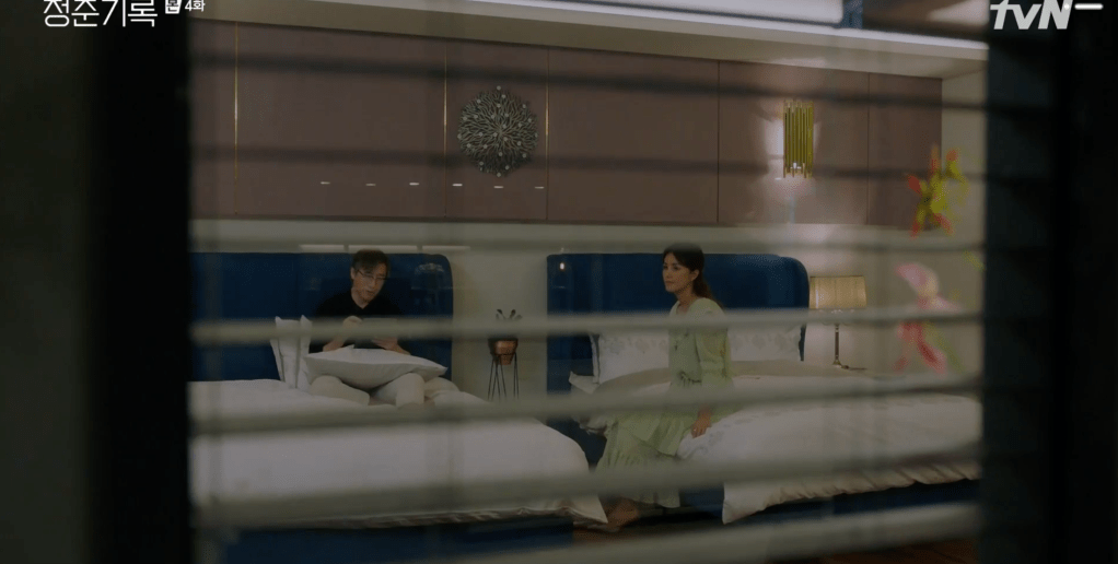 Mama Hae-hyo and Hae-hyo’s Dad have a conversation that night about their kids. Hae-hyo’s Dad checks in with Mama Hae-hyo about Hae-na’s plans for law school in which Mom responds that she expects Hae-na to get accepted. Mama Hae-hyo points out how distracted Hae-hyo’s Dad seems with their kids and indirectly encourages him to be more involved in their lives, but he doesn’t think much about it. Mama Hae-hyo plays a much bigger role in their lives, but she explains the reason behind this. Hae-hyo’s Dad doesn’t have anything good to say about her and she expresses envy for all the other couples who are happy with their marriage.