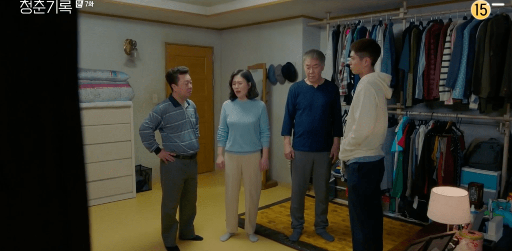 It’s another day of work for Jin-woo’s Dad and Dad. They’re reminded of how their kids are getting older and how they still need to care for them and look after them. All Dad and Jin-woo’s Dad seem to talk about are their kids, but they just can’t seem to stop themselves. Mama Hae-hyo asks Mom to assist in the search for a new cook. Mom agrees to be on the lookout for someone and then receives a text from Jin-woo’s Mom asking to have some drinks together that night. And so Dad talks a bit about Mom when he convenes with Jin-woo’s parents at a restaurant. He feels as if he and Mom often fight and nag at each other, but stops talking upon seeing Mom join the group, lol. Jin-woo’s Mom brings up the scamming situation with Gyeong-jun and assumes Mom must be upset. Mom glares at Dad for sharing the information with Jin-woo’s parents, but she quickly gets over it. They were bound to find out anyways. They all give each other a toast for hopefully what will be better days. On the walk home, Jin-woo’s Mom rambles about the possibility of being Mama Hae-hyo’s cook. Sure, she’s opinionated, but she’s a good cook. Eventually, our two sets of parents go about their own way and they all head home.