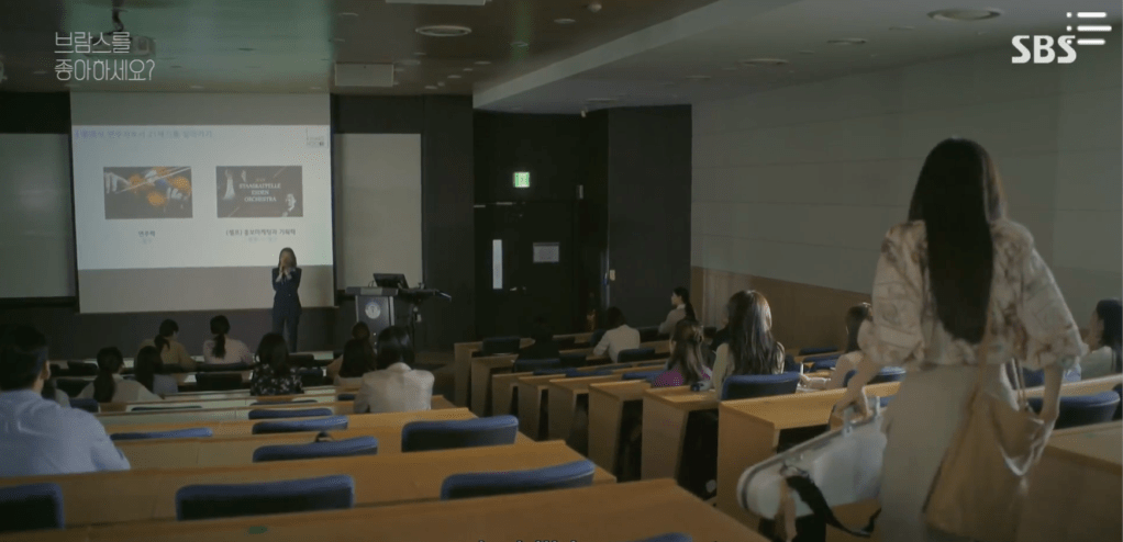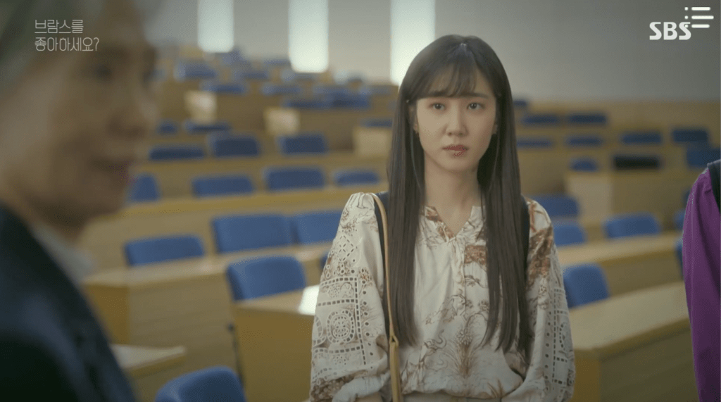 The Department of Music hosts a special talk with Director Na and Team Leader Cha. Director Na is directed by Professor Song to the classroom the talk will be held in and the two chat a bit about Jung-kyung. Director Na is aware about what happened with Jung-kyung and Ji-won, but she doesn’t find it too big of a problem. Jung-kyung usually does whatever it is that she likes and sets her heart to. When Song-Ah arrives for class, she’s asked by her housemates about the dinner gathering from the night before. Song-Ah reluctantly agrees that she had a great time (even though she really didn’t) and she heads to attend the special talk by Director Na and Team Leader Cha after class.