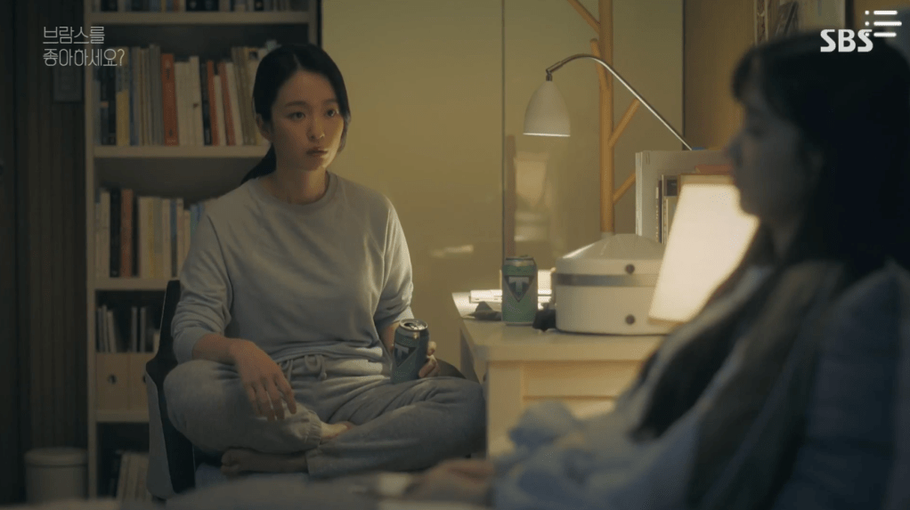 When Song-Ah arrives home, her sister Song-hee, notices how down and dejected she seems. She enters Song-Ah’s bedroom with some beer later on that night and attempts to get her sister to talk to her. Although Song-Ah is reluctant at first to open up, she eventually shares her worries and concerns to her older sister. She’s not so sure if she wants to keep pursuing music. It seems as if things aren’t working out. Song-hee points out that she admires Song-Ah for pursing her dreams and goals in life despite the backlash and criticisms. Song-Ah can always quit if she wishes to and she should make decisions for herself that will make her happy. Nothing else matters. With that, Song-hee exits the bedroom and Song-Ah is left in her bedroom to reflect on her life. She feels a little bit better.