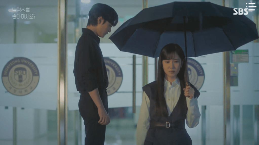Song-Ah’s struggling with everything that’s going on in her life and she wishes to return to the times when she was less anxious. She tried to understand Joon-young and his complicated relationship and history with Jung-kyung, but doing so only hurt her even more. It especially didn’t help with the recent recording to Schumann’s ‘Träumerei’ that she learned about from Jung-kyung. It only reaffirms everything once more for Song-Ah that he truly isn’t over Jung-kyung. So instead of waiting and suffering like she did this entire time, she’s going to let him go. Song-Ah wishes to just focus on herself now. It was too hard loving Joon-young. She never felt like she could lean on him when he himself had so much going on in his own life and was dealing with such instability as well (OOOOOH). Song-Ah calls it quits and she walks out of the practice room by herself. Upon stepping outside, she pauses as it pours and rains. Joon-young follows after her and hands over his umbrella for her to use. With Joon-young’s umbrella in her hand, Song-Ah turns her body forward and she steps away from Joon-young with tears in her eyes. She cries at the thought of breaking up with Joon-young. For someone whose heart just got broken, he’s still looking out for her and taking care of her. Why did things have to turn out this way?