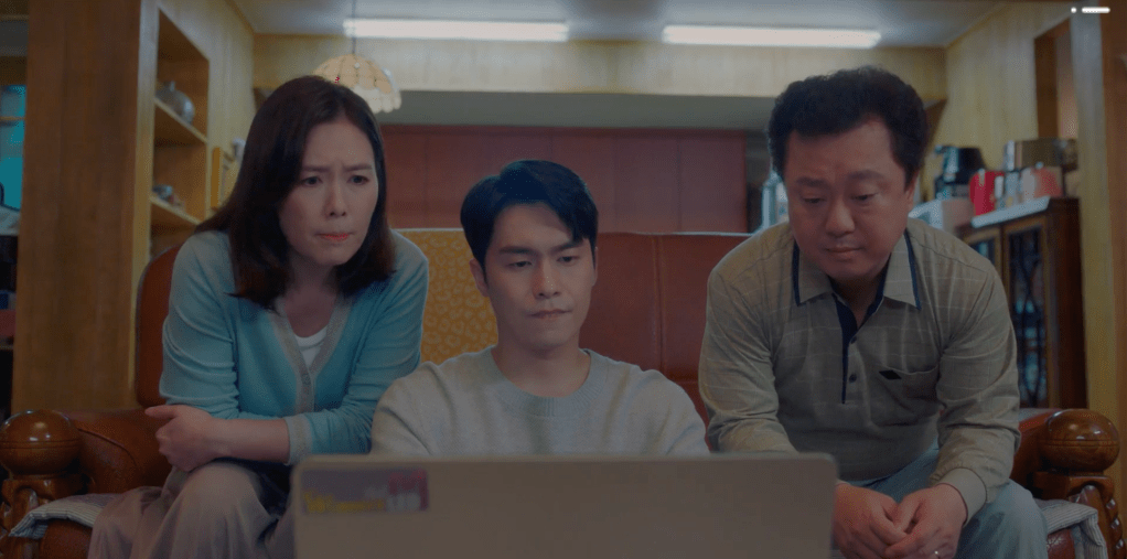 Things are different for others though. Gyeong-jun’s manager brings up the rumors about Hye-jun possibly liking men and how it’s all everyone is talking about online at the moment. Gyeong-jun too doesn’t easily believe the rumors and notes that unlike him who’s never dated before (LOL), Hye-jun has only dated girls. It doesn’t take too long until Hye-jun and Min-jae learn about all the rumors and controversy surrounding Hye-jun and his connection to Charlie Jung. Reporters swarm Min-jae’s phone while Hye-jun learns about a Youtuber who’s made a video about him and Charlie Jung. The Youtuber speculates that Hye-jun and Charlie must have been romantically linked to each other given just how involved the two were with each other during Hye-jun’s modeling days. Min-jae and Hye-jun are in shock upon watching the popular video and Mom, Dad, and Gyeong-jun even threaten to sue the man. Grandpa also wants to know what’s going on, but they keep things a secret from Grandpa for now.