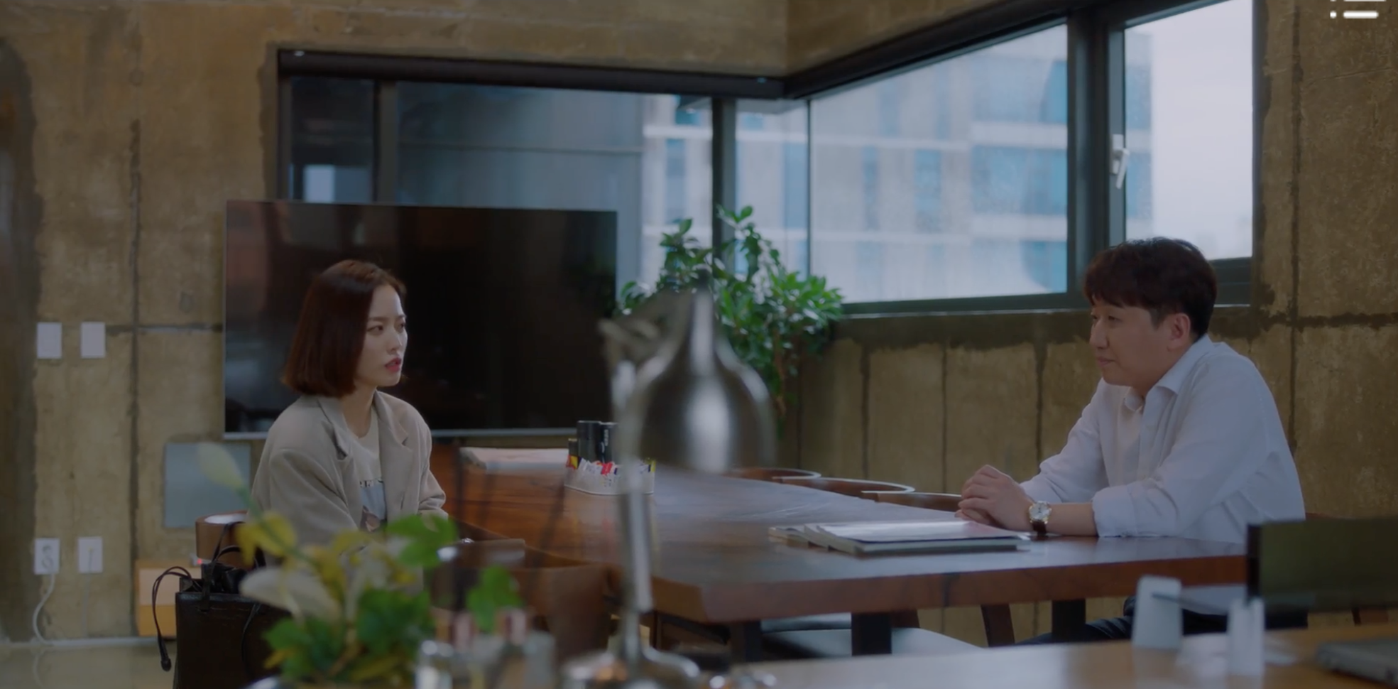 Min-jae talks on the phone with a reporter and vows to meet up with him so that she can clear up all the rumors surrounding Hye-jun and Charlie Jung. But the reporter isn’t the only person who Min-jae meets up with. She and CEO Lee discuss about Hye-jun’s situation at a cafe. CEO Lee shares his thoughts on everything and suggests that Hye-jun be transferred over to him. Things are too big and challenging for someone like Min-jae to handle; CEO Lee believes he can take things on and handle the situation much better. Hye-jun can always go public with his relationship with Jeong-ha to prove his stance. As Hye-jun gets bigger and more popular, more and more people will continue to use his name to make money. That’s something Min-jae will have to get used to and be more prepared for. If she isn’t up for the job, CEO Lee is.
