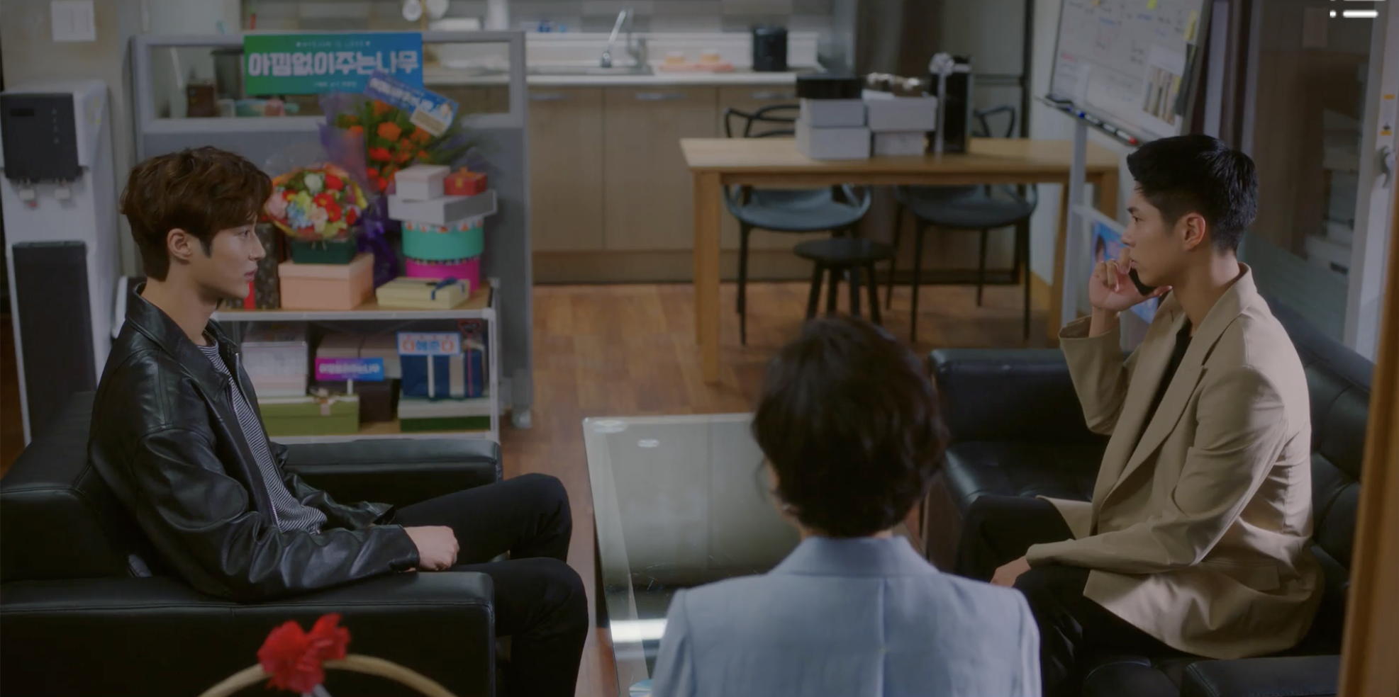 Hae-na and Jin-woo spend some time together on another date. Jin-woo’s not that jealous about Hae-na’s blind date, but Hae-na has other plans. Forget the blind date, she wants to get married to Jin-woo. Of course, Jin-woo is taken aback by the sudden confession and he struggles to come up with a response to Hae-na’s statement. Hye-jun has some time until his family meeting so he decides to make a pit stop at Jeong-ha’s house. Meanwhile, Min-jae reads some comments criticizing Jjampong Entertainment (AKA her) and their inability to take care of Hye-jun. She then receives a phone call from Reporter Kim who follows up with her about the dating rumors swirling between Charlie Jung and Hye-jun. Although Min-jae strongly denies the accusations, Reporter Kim isn’t buying any of it. It’s not as if Min-jae is the only one who knew Hye-jun from his modeling days which prompts Min-jae to immediately think about CEO Lee. CEO Lee must have been the one behind everything.
