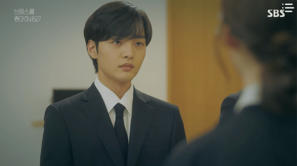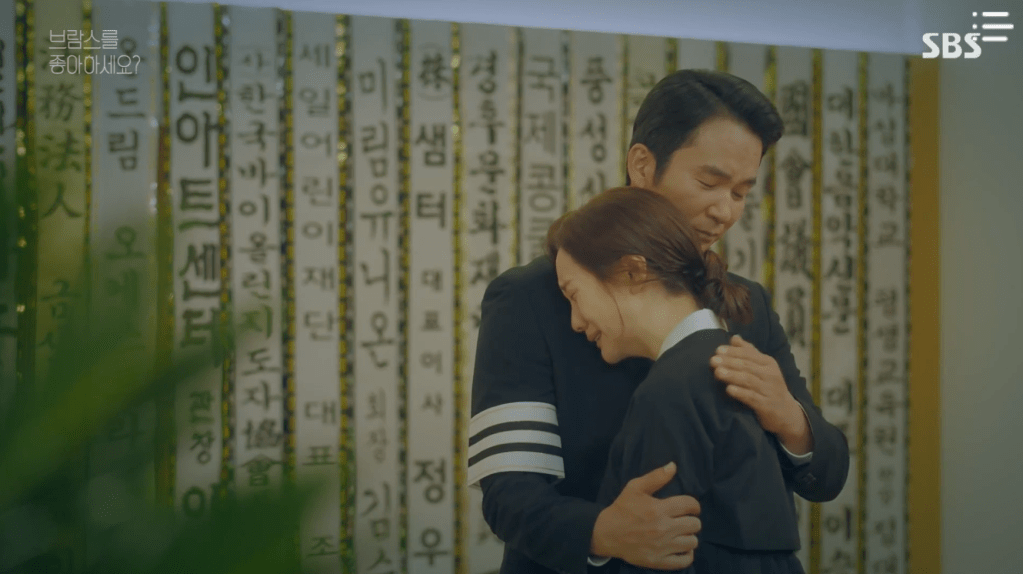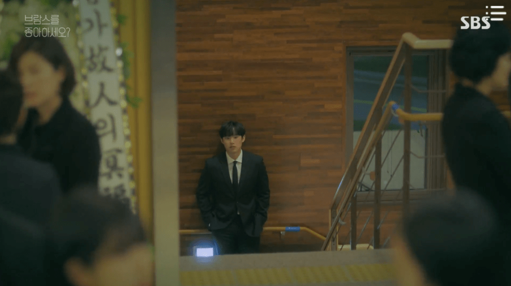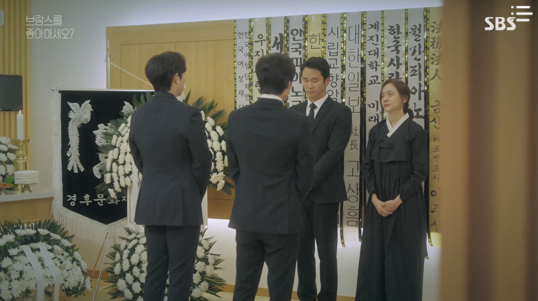 Both Joon-young and Hyun-ho make it to Director Na’s funeral and they pay their respects to her. Just like they did with Jung-kyung’s Mom’s passing, Jung-kyung and her dad embrace each other at Director Na’s funeral (oof, the comparison between young Jung-kyung and adult Jung-kyungn hugging Dad was beautiful). Joon-young and Hyun-ho shower Jung-kyung with their support and Hyun-ho spends some time alone with Jung-kyung to briefly catch up. She congratulates him on his new success and just like the old times, Hyun-ho holds Jung-kyung’s hand to check in on how she’s feeling. They quickly separate after realizing the situation and Jung-kyung proceeds to returning to the funeral. Song-Ah too stops by the funeral to pay her respects to Director Na and to show her support to Jung-kyung. After her visit, she encounters Joon-young waiting in the lobby for her so the two take some time to talk to each other.