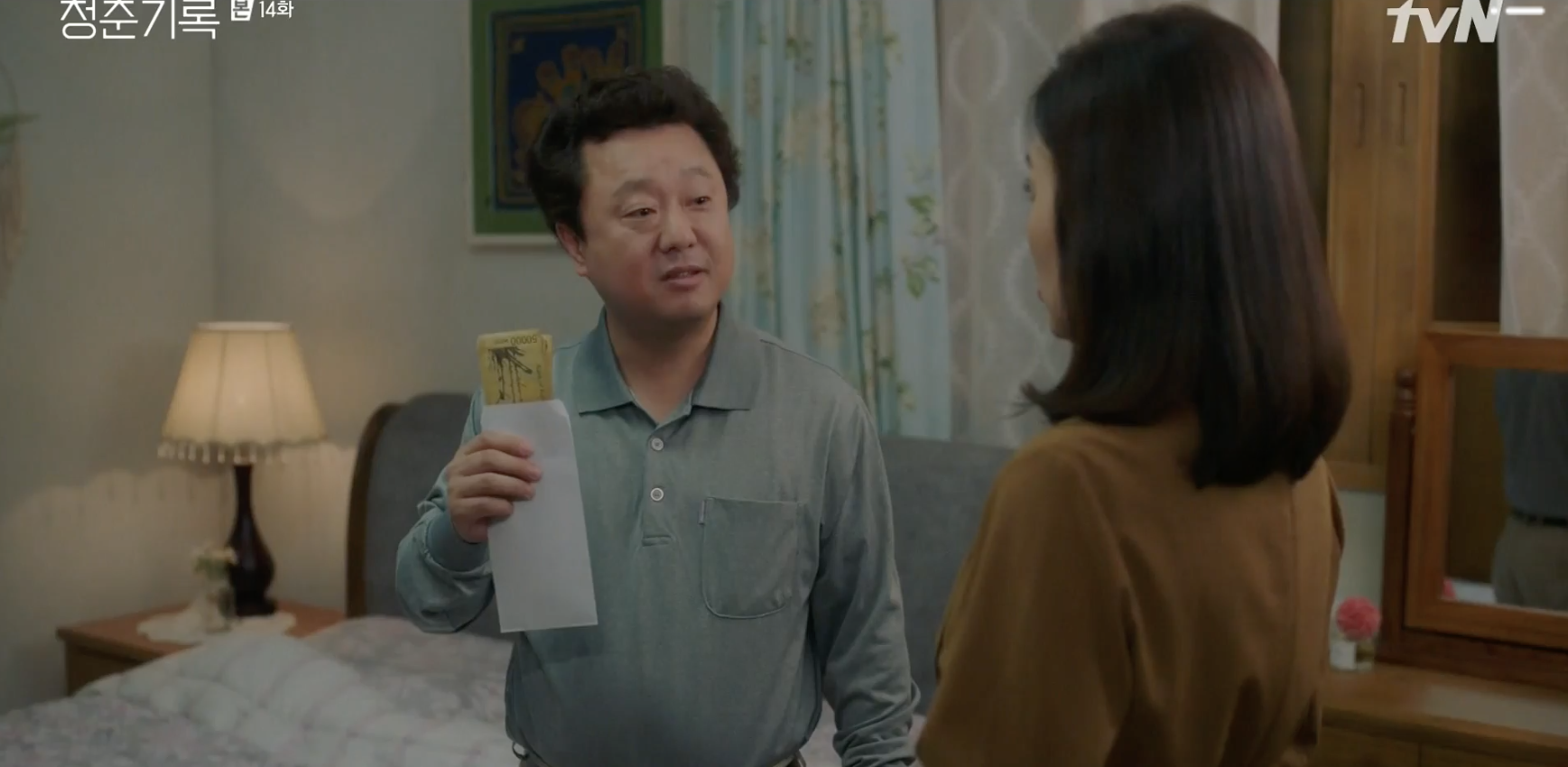 Jeong-ha bids farewell with Hye-jun as he heads out for his commercial shooting. He feels apologetic for not checking in with her on how she felt about their relationship, but Jeong-ha doesn’t mind. She gets all his love in return and that’s more than enough for her. Hye-jun also requests for Jeong-ha to walk him to his van. He wants to spend as much time with her as possible; every minute is precious. Dad counts the allowance money he receives from Grandpa and even shows it off to Mom. Mom doesn’t think too much about it, but Dad is proud of his work. It’s the first time he’s received money from Grandpa so he’s going to cherish this moment forever. Hehe. Dad is too cute counting the money, lol. Ji-Ah and Min-jae continue to plead for Gyeong-jun to write a letter of apology to the person who has sued him. Gyeong-jun doesn’t think he did anything wrong, but Min-jae and Ji-Ah try to convince him otherwise.