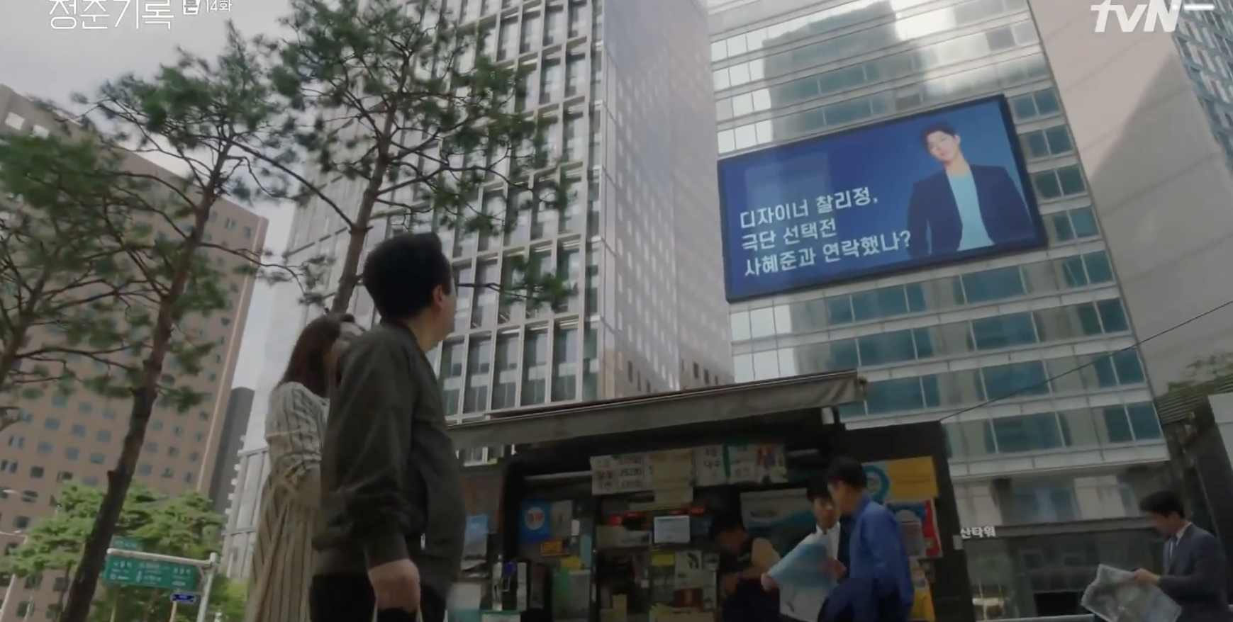 Mom and Dad treat themselves to some new clothes and delicious food. While shopping, Dad notices a man staring at Mom and he grows jealous. How dare this man stare at Mom?! Lol. The man clarifies that he himself is married and he walks away to pick up his wife’s phone call. Mom sort of likes how Dad was jealous even as much as Dad doesn’t want to admit it. While walking outside, they come across a huge screen with the latest news about Hye-jun and his relationship with Charlie Jung. Rumors that the two were dating garners attention given how Hye-jun was the last person who Charlie Jung contacted before he passed away. Mom and Dad pick up a newspaper to read the news and notices that it was written by Reporter Kim. Hye-jun also notices the headlines as he transitions from one schedule to the next. He too isn’t so happy.