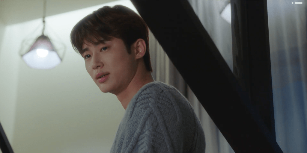 Min-jae stresses out while watching a livestream talk negatively about Hye-jun. He’s no longer as popular given all the controversy and scandal surrounding him so Min-jae feels the urgency and need to resolve everything. She ends up emailing the last text messages that Charlie Jung had sent to Hye-jun to a reporter to get an article published. When Hye-jun arrives home, he finds Grandpa in the house and Mom out at work. Hye-jun isn’t feeling the greatest and has to pretend as if everything is fine between him and Jeong-ha when Grandpa asks about the dinner date that was scheduled for that weekend. Hye-jun proposes that it be rescheduled and then heads to his bedroom to get some rest. There’s a lot going on in his mind and he lays it all down.