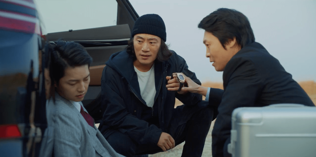 The limo driver (cameo by Jin Sun-kyu) and his literal partner in crime (cameo by Lee Hee-jun) rejoice and celebrate as they steal all of Vincenzo’s valuable belongings. They discover lots of cash and even take Vincenzo’s authentic and luxurious watch. Before Vincenzo can fight the two criminals, they knock him out once more and leave him deserted in the middle of the dirt field. All Vincenzo has with him is a $50 bill that they placed around his finger and he uses it to get on a bus to his original destination prior to getting drugged and robbed. Vincenzo unleashes all his anger out by cursing in Italian at every chance he gets regardless of where he’s at or who’s around him. Poor Vincenzo.