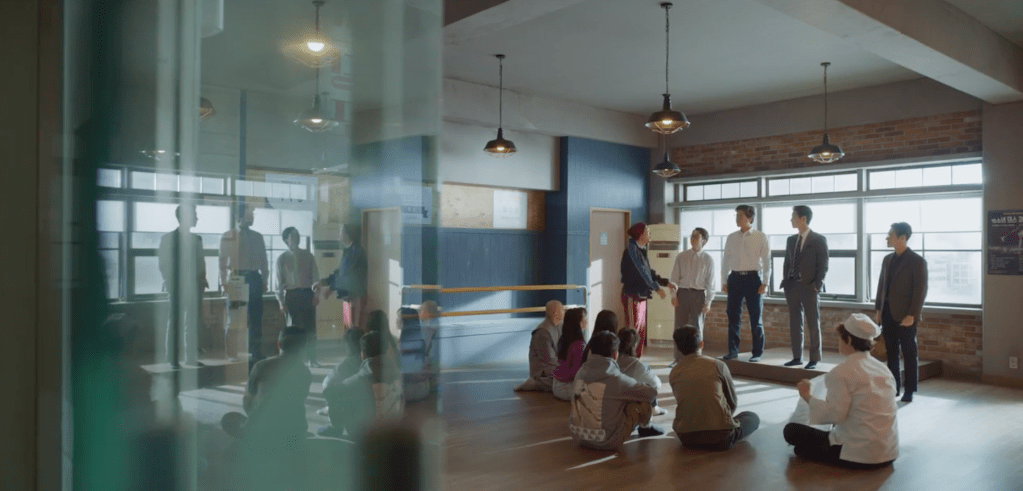 A small town hall meeting is held in dancer, Larry Kang’s (Kim Seol-jin) dance studio. All the tenants are there and are soon joined afterwards by Vincenzo, Mr. Cho, and Lawyer Hong. News of an agreement will be drafted and shared the next day and all the tenants are to sign it. Of course, some are a little skeptical and cautious. They don’t really trust Vincenzo while some others, such as the young lady of the piano school Seo Mi-ri (Kim Yoon-hye) and Cheol-wook’s wife, Jang Yeon-jin (Seo Ye-hwa), completely leave things up to Vincenzo to handle. Monk Chaeshin pitches in a few words before everyone eventually gives in to agreeing with the agreement. They’ll eventually get their lots back once everything is settled and the building is reconstructed. Lawyer Hong has a word with Vincenzo after the meeting and warns Vincenzo to stay in his place. Lawyer Hong represents people while Vincenzo represents rich people with money. Though they are both lawyers, they stand for two completely different things. Lawyer Hong is keen on defeating Babel E&C regardless of what it takes.