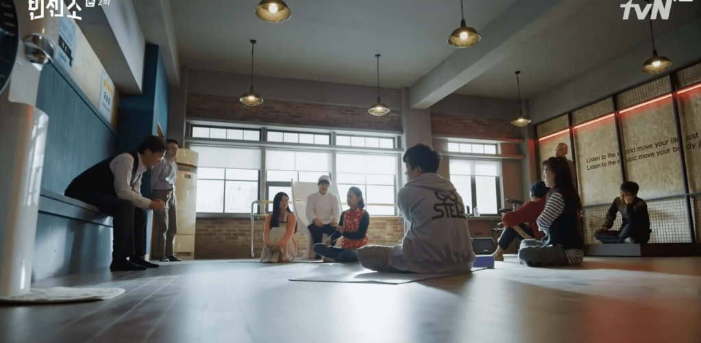 Cha-young catches up to Vincenzo and she cuts to the chase. She’s suspicious and skeptical of Vincenzo and is certain that there must be something bigger behind his fight against Babel E&C. There must be another reason as to why he’s trying so hard to defeat the huge conglomerate. Though Vincenzo doesn’t give anything away, Cha-young can sense something fishy about his involvement with the situation and makes sure to relay that suspicion to him before walking away. The Geumga tenants all gather inside of Larry’s dance studio for another meeting. They express anger, frustration, and confusion about Vincenzo who they now perceive as a traitor. Cheol-wook offers to teach him a lesson using his martial art skills and they even go as far as to nitpick on Vincenzo’s Italian background. Lawyer Hong reassures everyone that he’ll do some investigation on Vincenzo for the time being to figure out what his true intentions on getting involved are and whether he’s on their side or not.