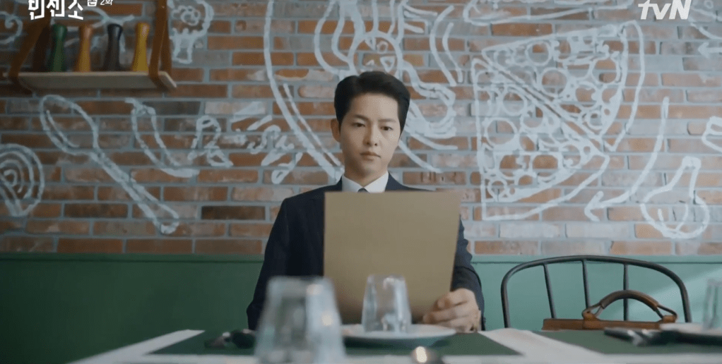 Speaking of the chairman of Babel, Han-seo pleads for forgiveness from a man dressed up as a hockey player at an ice skating rink. Han-seo apologizes for the urgent situation with the missing researcher as well as the postponement with Geumga Plaza. To teach Han-seo a lesson and to punish him for his incompetence, the man swings his hockey stick at Han-seo and beats the chairman ferociously. Vincenzo wakes up to a bright and early morning after suffering a nightmare about all the assassinations and missions he’s carried out back in Italy. The pigeons have also gathered outside of his window and that too wakes him up, lol. His next stop is, of course, Chef Toto’s Italian restaurant and just like the previous experience, Chef Toto is petrified of Vincenzo’s judgement towards his food and Vincenzo is disgusted by the taste of the food. He describes it as trash once again, but he’s still keen on returning to eat at the restaurant. Vincenzo also isn’t afraid of exposing Chef Toto’s true story to everyone else if he has to. Poor Chef Toto!