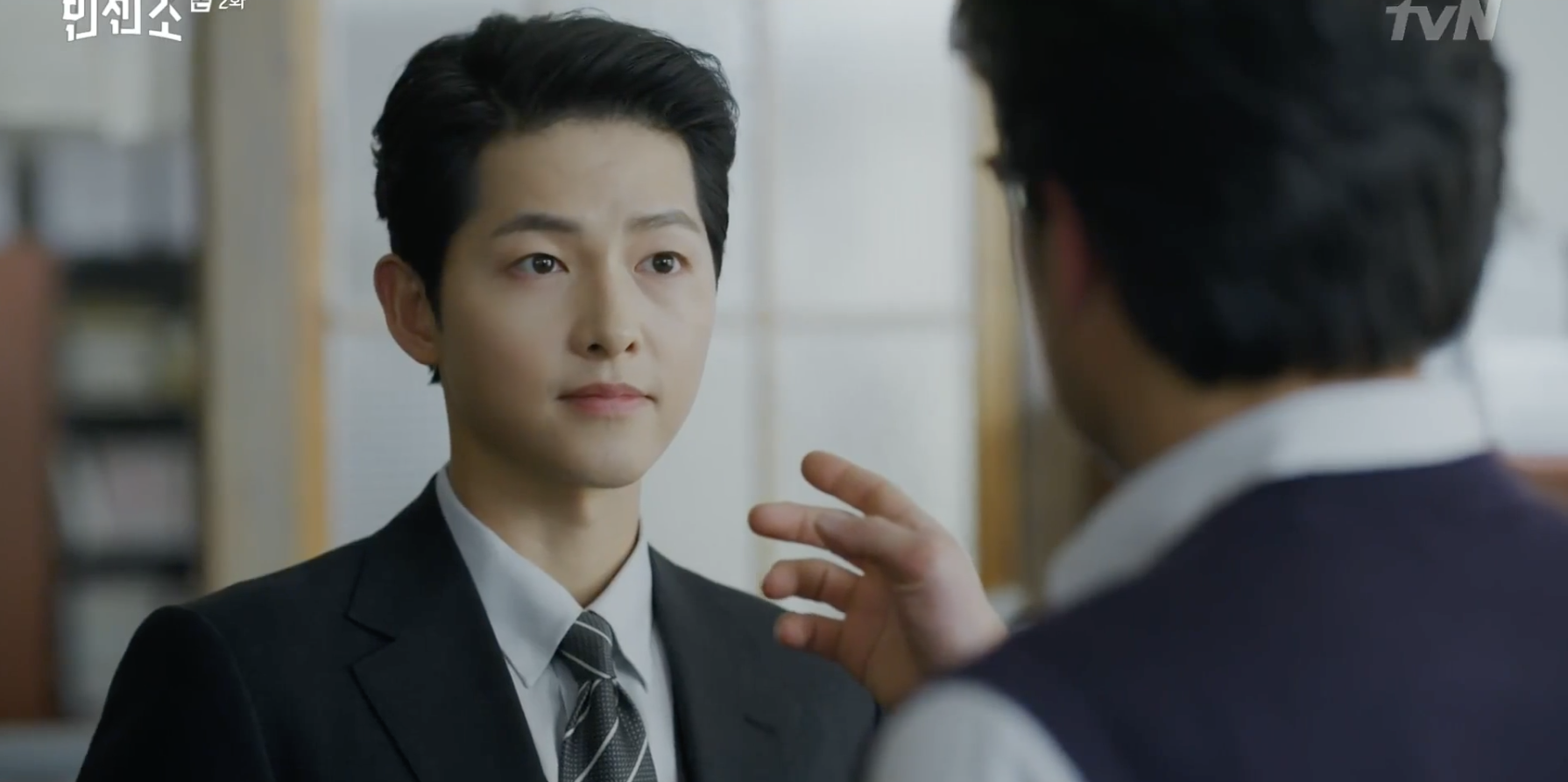 The best thing of it all is not just the act of hanging out together that is nice to watch, but also the types of conversations that take place between the two. Lawyer Hong went from being brutally honest with Vincenzo and pushing him away to eventually giving Vincenzo a chance to prove himself. Then he went on to sharing details about himself to Vincenzo that he probably never expected to do. I loved watching how conflicted Lawyer Hong was initially to hand over all his resources on Babel E&C over to Vincenzo, especially considering how skeptical and wary he was of him at first. However, things began to shift the moment Lawyer Hong leaned on Vincenzo which he saw amounted to rewarding results. From teaching Vincenzo some drinking etiquettes to talking about Ms. Oh to sharing his reasoning for the mere existence of Jipuragi, Lawyer Hong showed a new side of himself to Vincenzo once he became confident that he could trust Vincenzo. I loved witnessing the growth of their relationship and its short but sweet evolution. Just like with Cha-young, there’s more than meets the eye with Vincenzo.