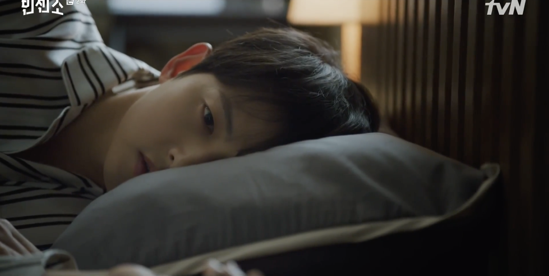 With her father gone, Cha-young has no choice but to update Vincenzo about the demolition scheduled for 11pm the next night. She urges Vincenzo to evacuate the tenants before they possibly get hurt and die. Vincenzo’s surprised at how worried Cha-young seems, but he doesn’t think too much about it and resumes with eating breakfast. Once Cha-young finally regains control of herself and her emotions, she realizes how much of a mess her father’s house is and she cleans up the dining table, including the bowl of rice and soup that Vincenzo was eating from. LOLOL. While Lawyer Hong secretly meets up with Mr. Yoo at a motel, Vincenzo brainstorms on how to stop Babel E&C from demolishing Geumga Plaza. He toggles his golden lighter in his hand while he figures out a solution.
