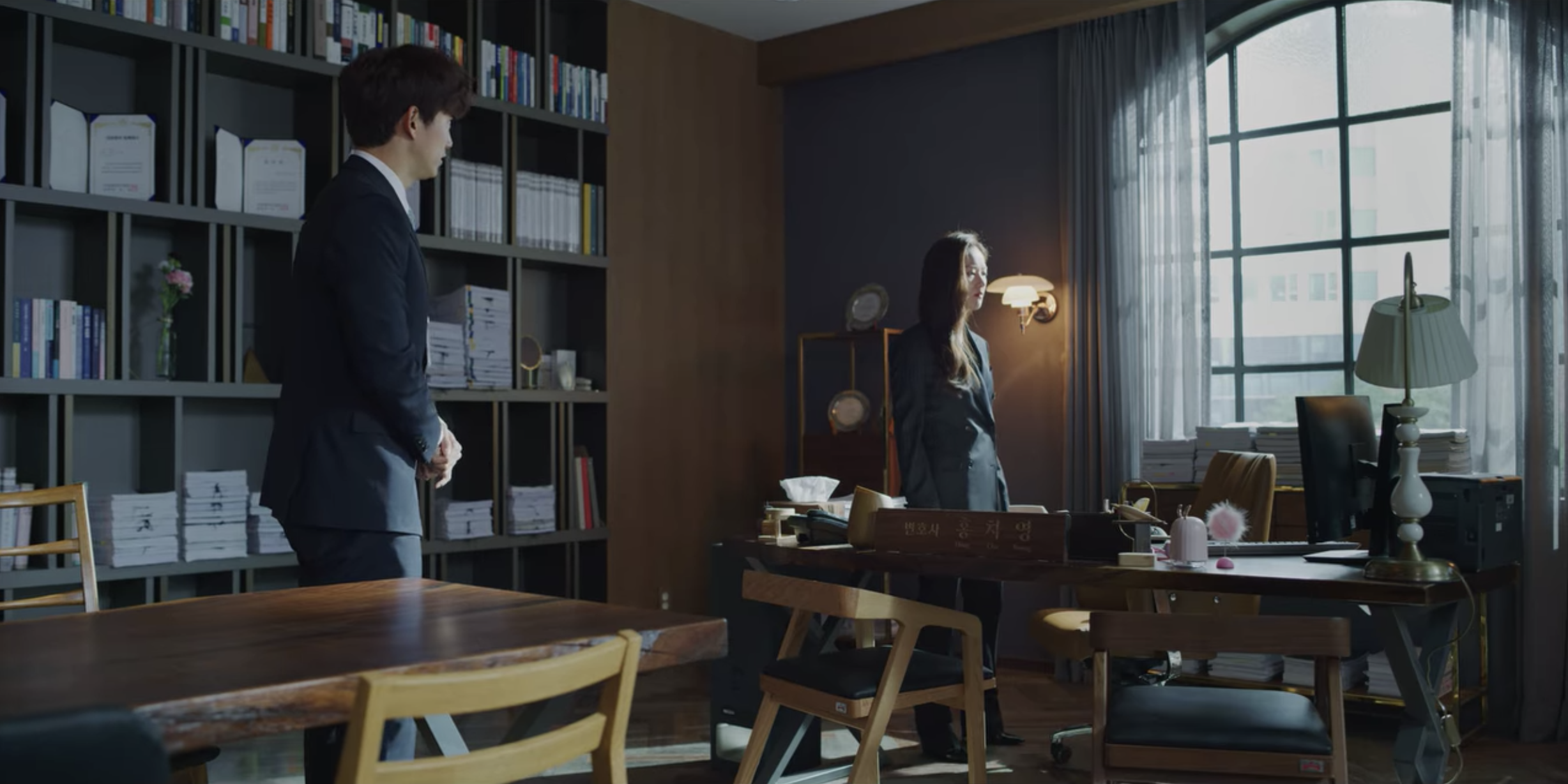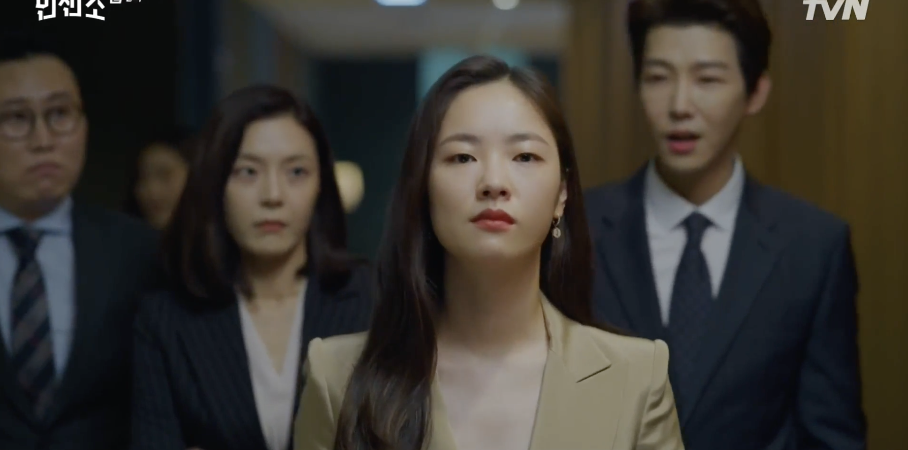 Managing Partner Han and Cha-young go over their next steps for their court case against Lawyer Hong. Things are looking great for Wusang and they’re confident that they will reign as the winner for the lawsuit. Just then, intern Joon-woo comes barging into Cha-young’s office with some news. Managing Partner Han picks on Joon-woo and his odd habit of wearing sneakers with his suits, but Joon-woo has to remind Managing Partner Han that it was him who picked Joon-woo to intern, not Cha-young. LOL. When Managing Partner Han leaves, Joon-woo runs up to Cha-young to deliver her the grand news: a researcher from the Babel Pharmaceuticals Drug Development division who was supposed to quarantine has gone missing. He’s disappeared.