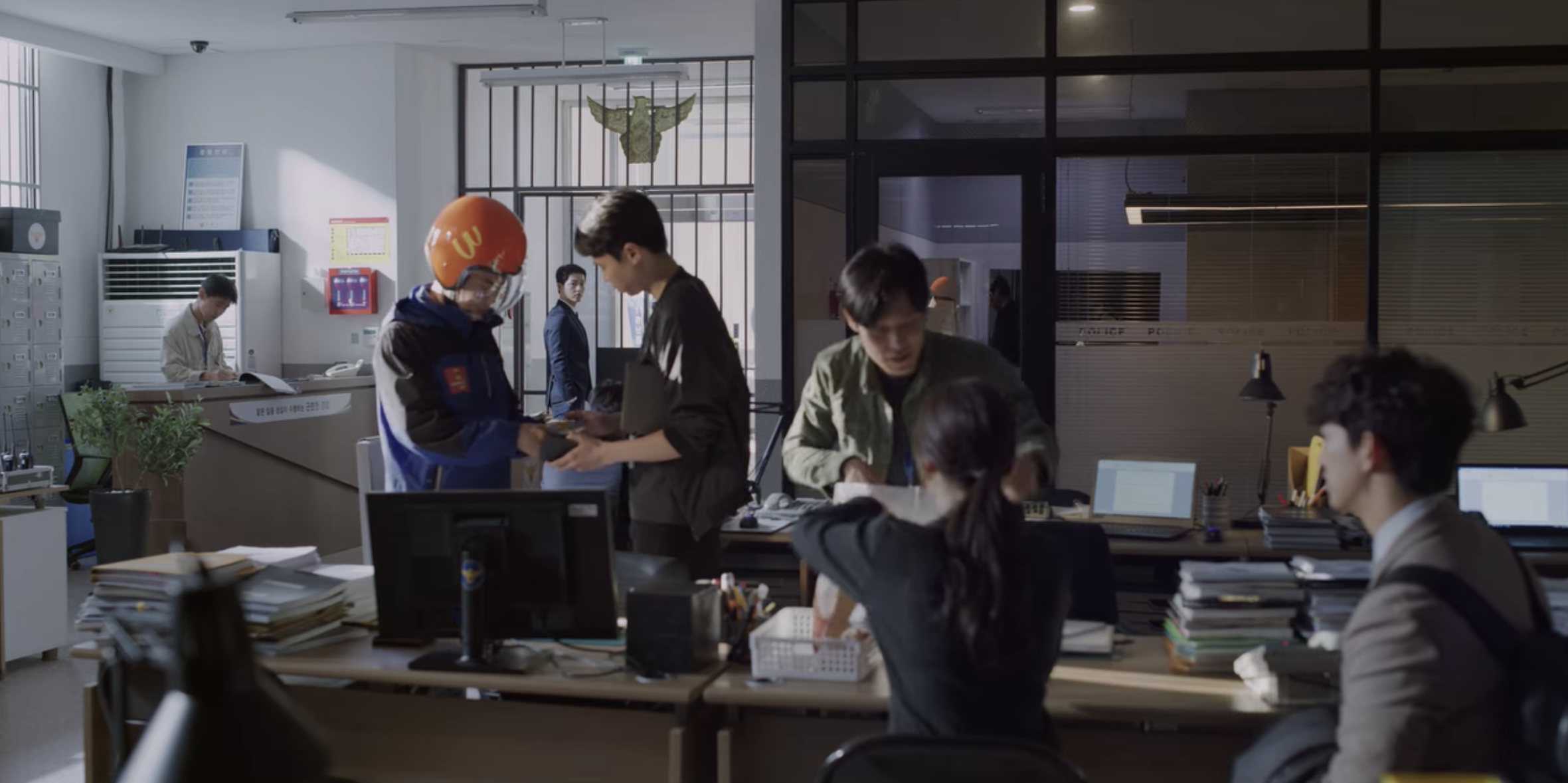 The detectives at the police station grow worried with their lack of evidence against Cha-young who really was at home during the time of the incident. However, since they’ve already been paid by Wusang, they keep quiet and decide to stall by ordering Cha-young some breakfast. Cha-young wakes up from her nap with the appearance of Joon-woo who shows up at the police station. He’s determined to get Cha-young out and uses his affiliation with Wusang to intimidate the detectives. Of course, it’s not until Vincenzo shows up with actual evidence of CCTV footage of Cha-young at the convenience store near her house during the time of the incident that her name gets cleared. There’s no proof that she had an accomplice either so Cha-young is eventually let go. But first, she eats some burgers for breakfast (LOL) and Vincenzo watches her for a few seconds as she munches on her burger before exiting.