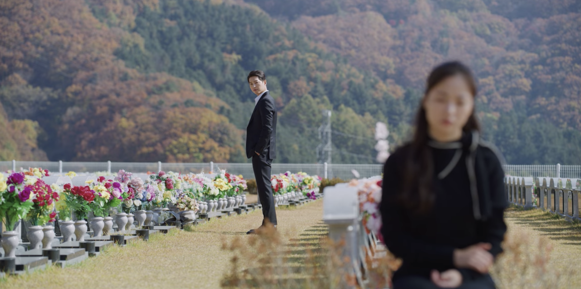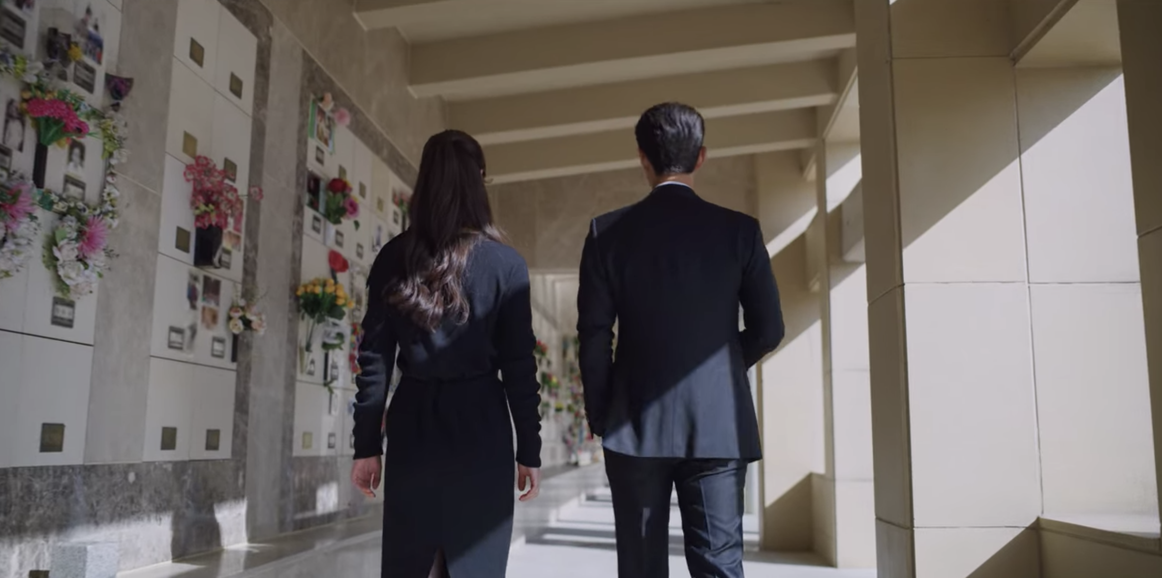 Vincenzo is rushed to the hospital as doctors and nurses attempt to save his life. Unfortunately, it’s too late for Lawyer Hong and he passes away from the incident. Cha-young cries and grieves for her father as he rests in the mortuary. She’s dressed up in her black funeral outfit and it’s all too much for her. When she steps out of the room, she listens in on the TV news providing coverage on the passing of her father. He’s accused of committing deeds like bribery and the reputation that he was known for is ruined with the lies spouted by the news. Cha-young spends some time with her father at his burial site and Joon-woo too is there to comfort her. He sits near her as she sits in front of her father’s tombstone. Meanwhile, Lawyer Choi rejoices by practicing her zumba skills in her office. It’s as if nothing ever happened.