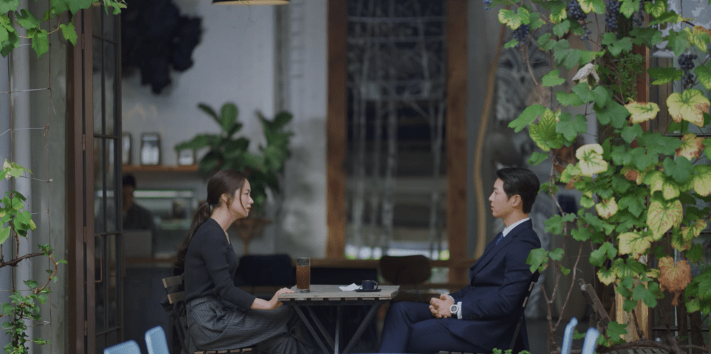 After eating breakfast, Joon-woo and Cha-young exit the police station together, but it’s Vincenzo who Cha-young immediately notices. He’s outside taking a call and she runs up to him in suspicion. She’s certain he was the one behind the pillow syringes and he only came to rescue her because he felt guilty. Vincenzo avoids Cha-young’s gaze and accusation and is saved by Joon-woo who introduces himself to the Italian lawyer. They exchange greetings before Vincenzo leaves and Cha-young chases after him. The two head to a cafe afterwards and it’s obvious the two are complete opposites. Vincenzo enjoys his double shots of expresso while Cha-young drinks a simple iced Americano, something Vincenzo describes as sewage waste (omg LOL). Once they sit down and regain their composure, Vincenzo admits his wrongdoing. He was furious and wanted to seek some revenge on Babel, but he vows to be more careful next time. He also encourages Cha-young to give up on the fight against Wusang and Babel. It’s a hopeless war that she won’t be able to win. Vincenzo was already aware of the connection between Lawyer Hong and Mr. Yoo and yet he hid the important information from Cha-young on purpose. It won’t change anything and she doesn’t have proof that her father and Mr. Yoo were intentionally killed. It’s best if Cha-young just close down Jipuragi and give up for now.
