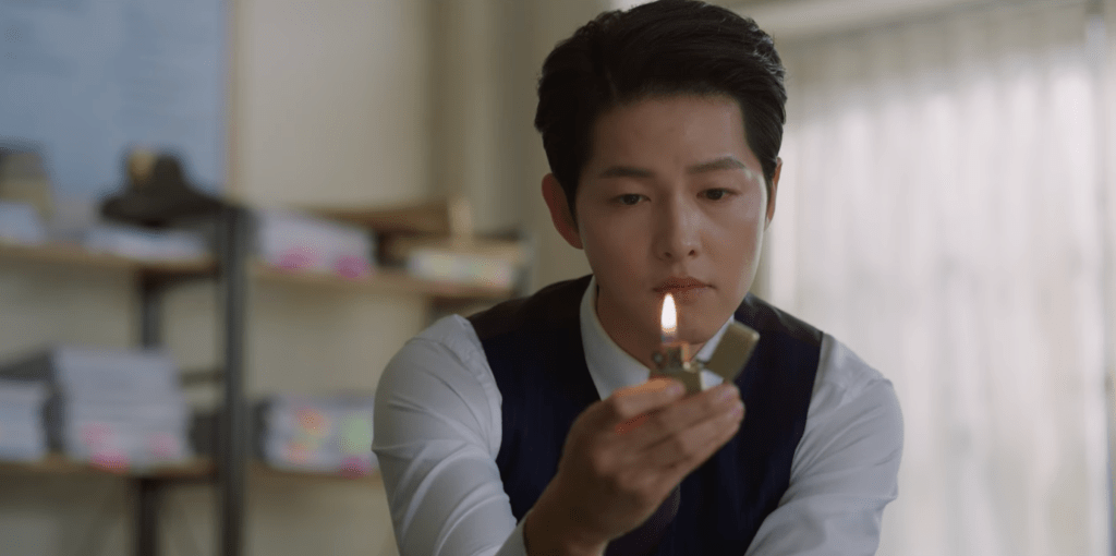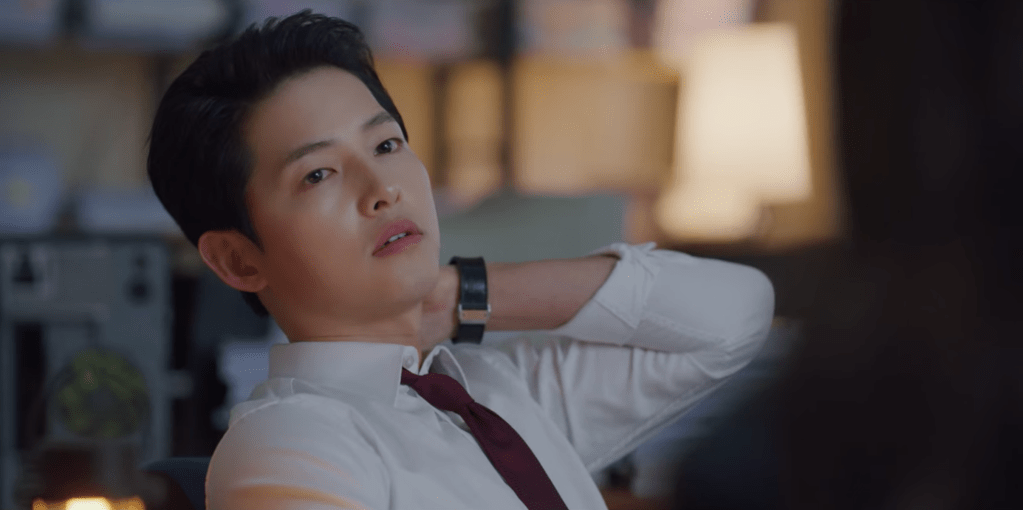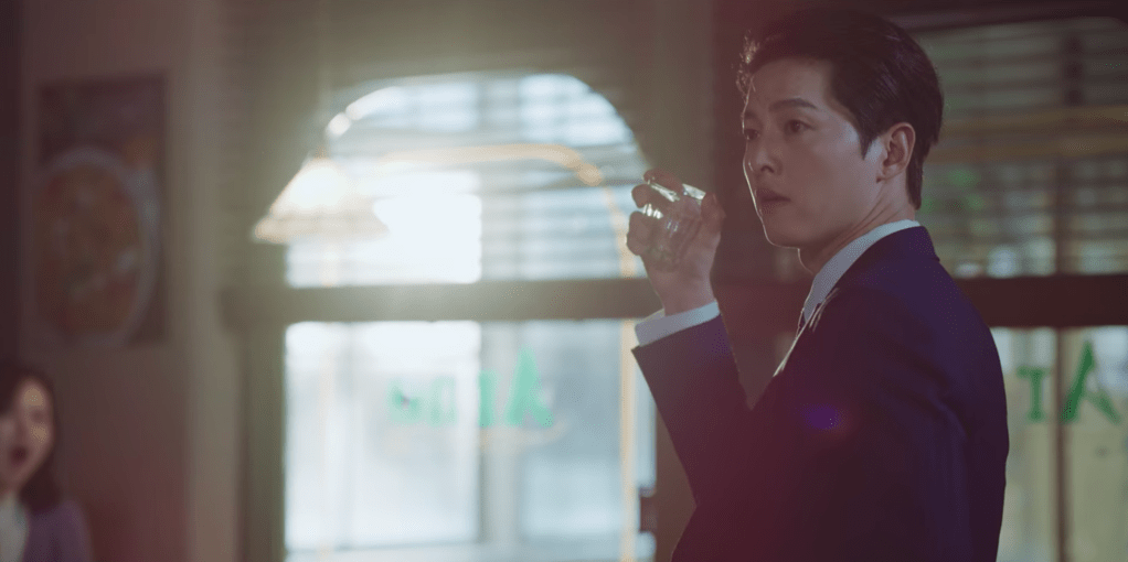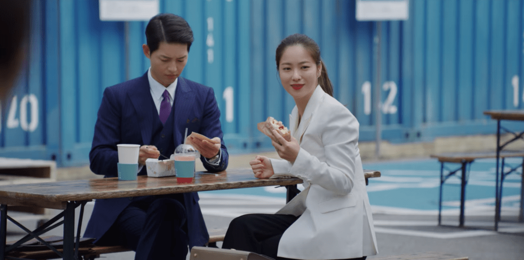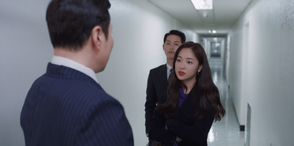 This episode fed us so incredibly well with the amount of interactions between our lead couple and I couldn’t be more grateful or happy. I wasn’t expecting as much teamwork between them in this episode so it was such a pleasant surprise to watch the two take down Mr. So and to gather more evidence against Babel Chemicals for the trial. In episode 4, we sort of got a glimpse into Cha-young and Vincenzo’s dynamic as business partners and teammates, but they went all out in this episode and it was so much fun watching them take down Mr. So. You really got to see just how well the two mesh together and how they compliment each other. My most favorite scene in this episode definitely had to be the finger-flicking scene. My heart was fluttering so much and I had to pause my phone and throw it on my bed away from me at one point because of how nervous I was. I was hyperventilating and I just couldn’t handle it.