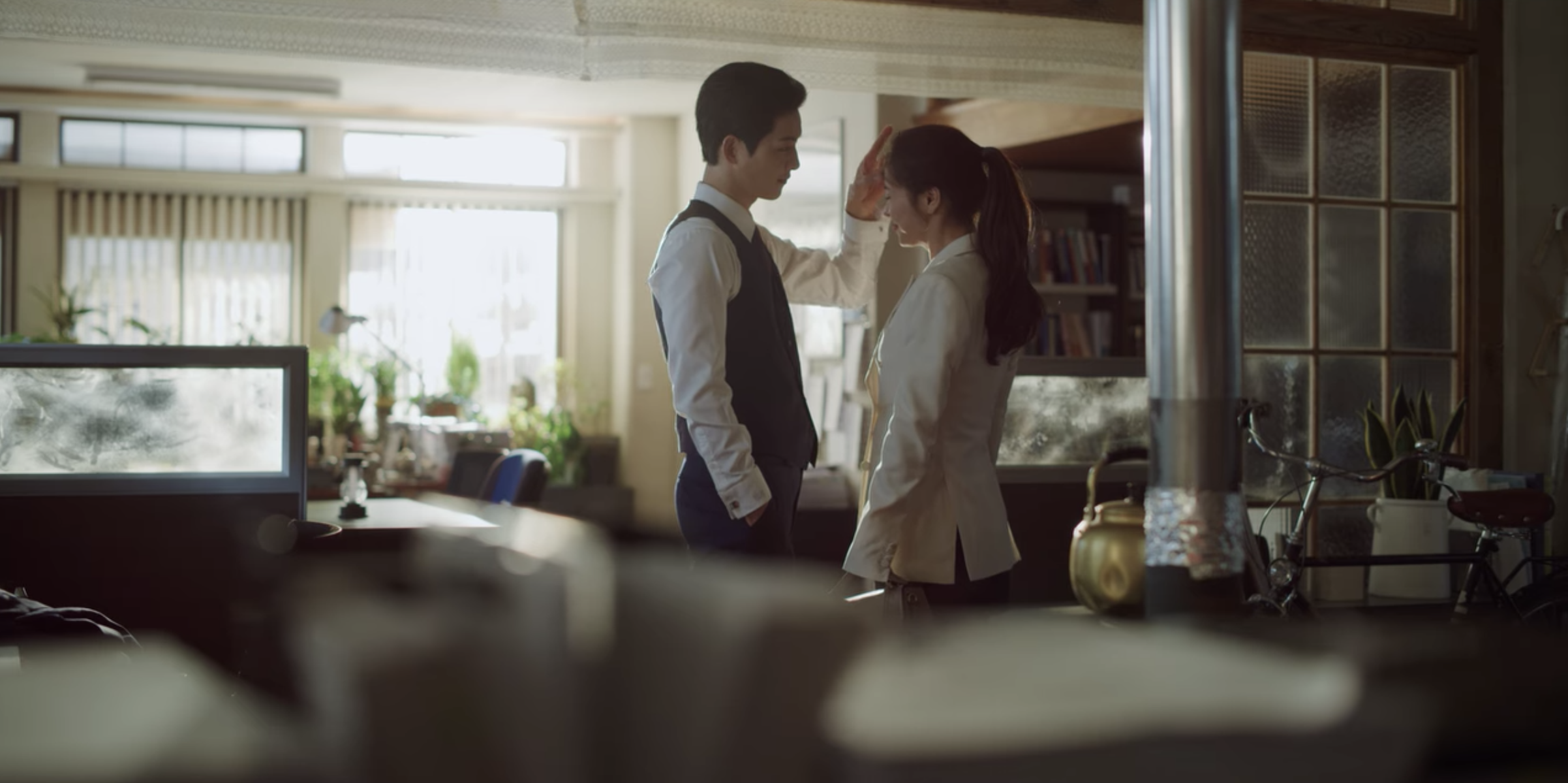 Cha-young and Vincenzo hang out at the cafe that they frequent. Based off of his experience with Han-seo at the gym, he’s certain that Han-seo isn’t the real chairman. He’s merely just a puppet. Using the Mafia as an example, Cha-young and Vincenzo conclude that they must get rid of the puppet in order to find out who the real boss is. Mr. Han updates Lawyer Choi on the background check that he committed on Vincenzo and notes that Vincenzo’s record is squeaky clean. There’s nothing on him, but that only makes Lawyer Choi even more suspicious. With that, she heads over to Jipuragi to see for herself who this Vincenzo guy is. When she enters the office, she finds who she assumes is Vincenzo sitting at his desk. However, it’s actually just Mr. Nam cosplaying as Vincenzo. LOL. The plant that she brought with her as a gift is placed on the table in the office and she walks away disappointed by the trickery that Mr. Nam tried to pull on her.