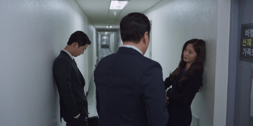 Cha-young and Vincenzo’s next stop is Wusang. Cha-young struts into the law firm with confidence and it’s clear resigning from the place was the best decision she could have ever made. She and Vincenzo meet with Mr. Han and Lawyer Choi to deliver the news that they will be the new lawyers representing the families of the victims in the Babel Chemicals lawsuit. Wusang could make things less difficult if they cease the manufacture of BLSD and clarify the lies that they’ve been spreading. They should also admit their wrongdoings and compensate the families of the victims who died. Of course, this is too much for Wusang and they refuse to back down. Taunting and threats are thrown from every angle in the room, but it’s Vincenzo’s final remarks that leaves everyone speechless. He reminds Lawyer Choi that they can do whatever they want, but they should remember that freedom comes with a price. With that, our power couple leaves the law firm and is encouraged by Joon-woo to back out while they can. It’s too big of a war and they won’t make it out alive. Neither Cha-young or Vincenzo plan on stopping so Joon-woo himself is forced to give up. He can no longer go easy on Cha-young. Upset, Lawyer Choi assigns herself to all the cases related to Babel. She’s also ready to fight, especially after realizing that Vincenzo was the one who threatened her on the phone back at the laundromat.