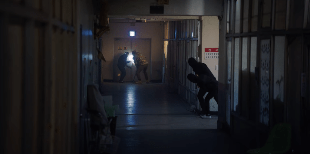 And so Vincenzo drops Cha-young back at home again (EEEEEK I’M SCREAMING. THE WAY I’M SMILING LIKE A FOOL RIGHT NOW). Although Vincenzo reasons that he only dropped Cha-young off so he could buy some wine on the way, Cha-young is well aware of his intentions. There’s a wine store right across from Geumga where he lives. He could have just gone there. Hehe. With that, shy and embarrassed Vincenzo bids farewell with his teammate and she enters her house only to find footprints inside. Someone’s in her house. Cha-young stares in horror at all the footprints and she turns around to find a man standing behind her with a hammer in his hand. She does her best to avoid him and throws whatever she can at him to defend herself. Just when the man is about to strike Cha-young, his partner shouts at the door entrance for his attention. The man walks over to open the door and is in for a surprise. It’s Vincenzo. VINCENZO TO THE RESCUE.