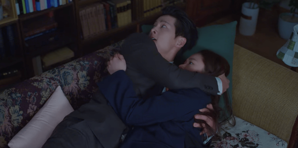 And so Cha-young continues with her search to find a friend. However, people are still wary and cautious around her and she fails to get in contact with anyone. Cha-young assumes she can just sleep over at a hotel for the night. It’s not like she’s afraid or scared anymore, right? Vincenzo drops Cha-young off at a hotel and they bid farewell. Before exiting the car, Vincenzo leans over to Cha-young and she gets nervous just thinking about it. Could this possibly be a kiss? But no. Vincenzo is just stretching over to her side of the car to open her door and Cha-young takes that as a sign to leave. So with that, she enters the hotel, but unlike what she thought, she’s not okay. She imagines all the male employees of the hotel to be serial killers and she’s confident she cannot stay by herself at the hotel that night.