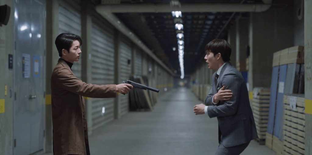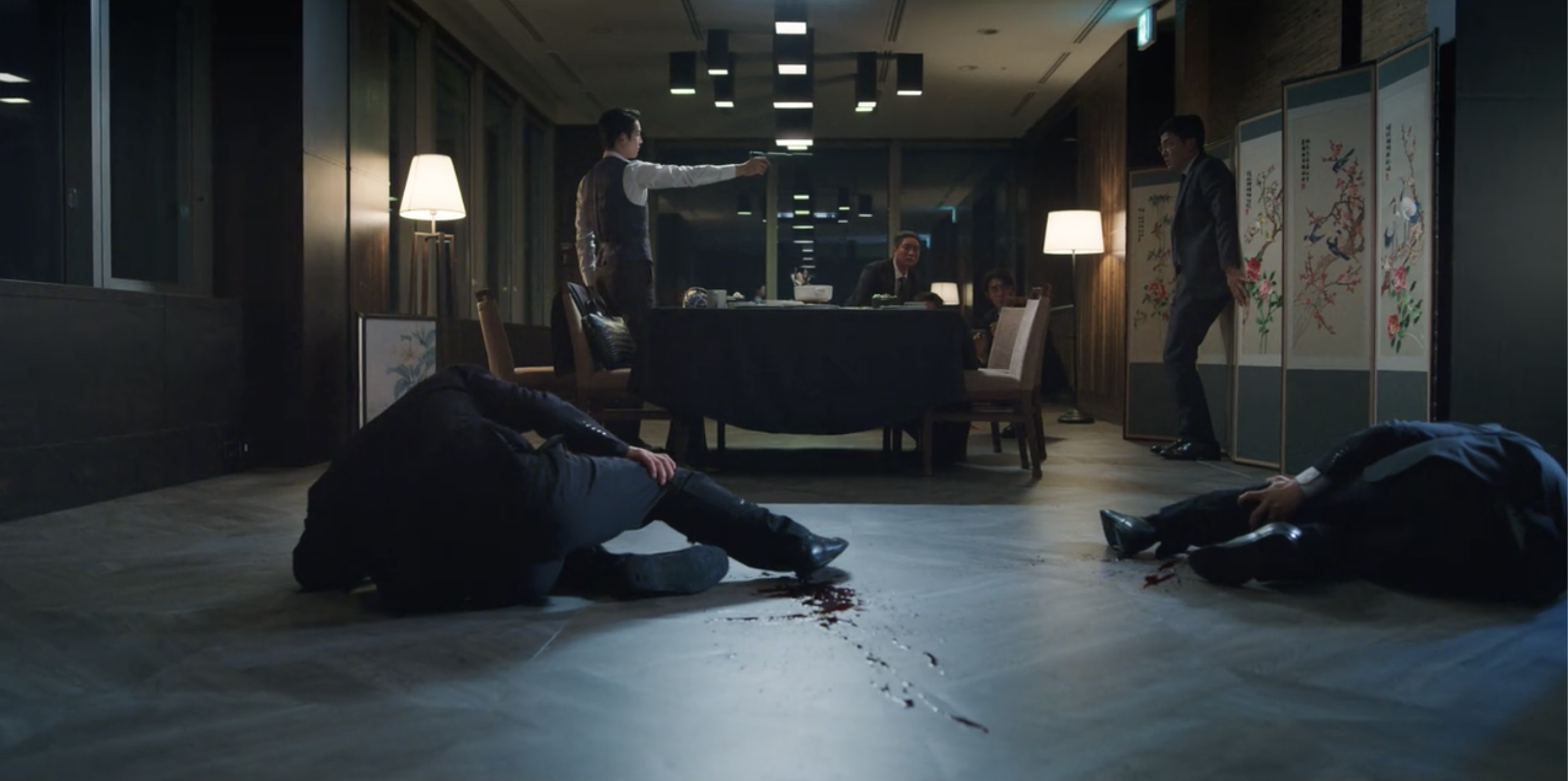 Vincenzo is always twenty steps ahead of everyone else and he pulls out his gun to shoot at two security guards’ legs. Everyone is demanded to leave the room so Mr. Han stays stuck with Vincenzo and Vincenzo’s gun. He pleads to be let go and his life almost flashes before his eyes. It’s Joon-woo’s turn and he discovers three hitmen inside of his house. He’s able to fight them off for a bit before escaping and running outside. He eventually disappears from their sight and returns to his house with an injured foot. Lawyer Choi and Han-seo rush to Joon-woo’s house after the incident and they all deliberate on their next move. While Vincenzo enjoys a cup of wine at the restaurant he was at with Mr. Han, Mr. Cho is chased down by a group of men hired by Mr. Kim. He’s eventually brought to a room to meet up with the powerful man and is given an assignment by him. Mr. Cho is to work on finding the person who worked on the security system for the secret room or else he’ll die (oh nooo, not Mi-ri!). The attacks against Joon-woo doesn’t stop. While walking to his car in the parking garage, Joon-woo is confronted by some hitmen and he barely manages to make it out alive.