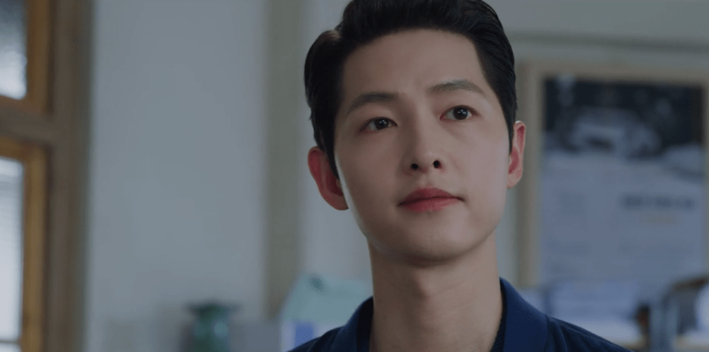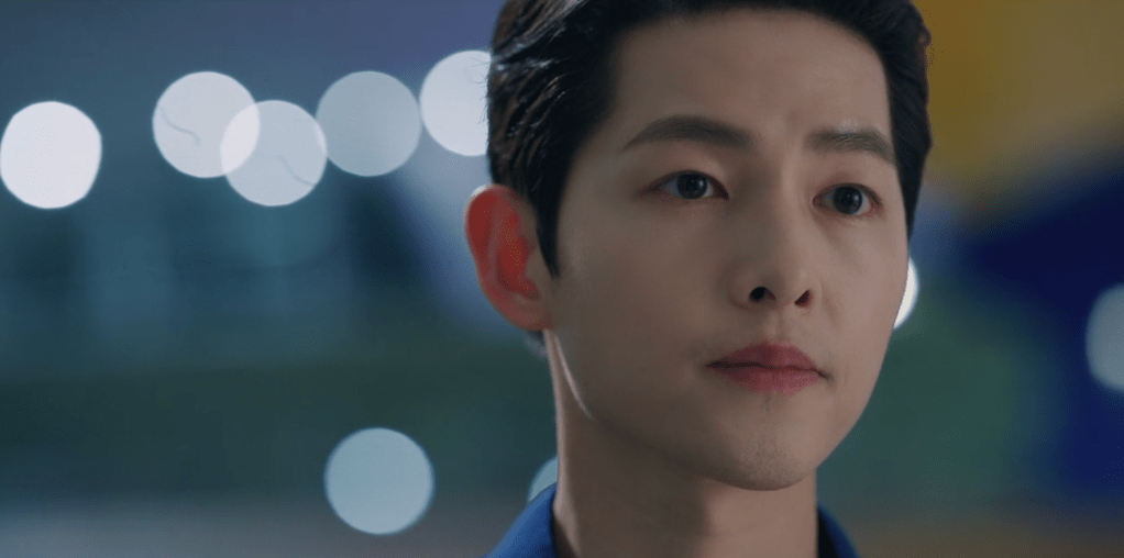 However, Vincenzo is interrupted by Cha-young who catches up to him inside of the airport. She stops him for the opportunity to say one last thing that’s been on her mind. So while catching her breath, she voices the Italian phrase,