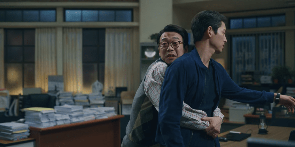 Joon-woo gets into trouble even while in prison. He ends up picking a fight with one of the prisoners and bites the man’s ear before being pulled off by guards. Whether outside or in prison, Joon-woo is still the same evil monster. Our Jipuragi team are notified about the postponement of their lawsuit against Babel due to the belief that the lawsuit might smear the reputation of one of the presidential candidates (aka Mr. Park). They are to postpone the trial to after the presidential election, but Vincenzo isn’t too worried. They do have the Guillotine file so they should utilize it to their advantage. After discovering that it was Prosecutor Jung who was behind the push, they agree to celebrate Prosecutor Jung’s promotion with a special gift.