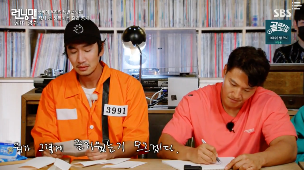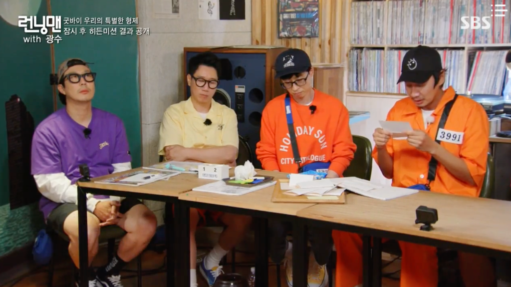 With that, PD Bo Pil explains the theme of the mission for the day: “Goodbye, My Special Brother” (as a reference to Kwang-soo’s movie). Kwang-soo’s committed crimes over his time on the show and PD Bo Pil went above and beyond to recruit a former judge to give Kwang-soo a verdict (omg, they’re always so extra I love it). After explaining all the crimes to the former judge and the amount of times they were committed, the former judge eventually sentences Kwang-soo to 1,050 years in prison. Everyone is shocked by the results, but also, is it really that shocking? LOL. And so with the 1,050 years, the rest of the members are tasked with achieving missions to reduce Kwang-soo’s entire sentence. Failure to do so by the end of the day at 6:30pm will result in a penalty for everyone. With it being Kwang-soo’s last day, the staff have also prepared gifts for the member that he has a chance of winning every time 150 years is reduced from his sentence. There is also a photographer on set assigned to take photos of the members throughout the day. Everything seems pretty simple, but there’s something that the rest of the members are hiding.