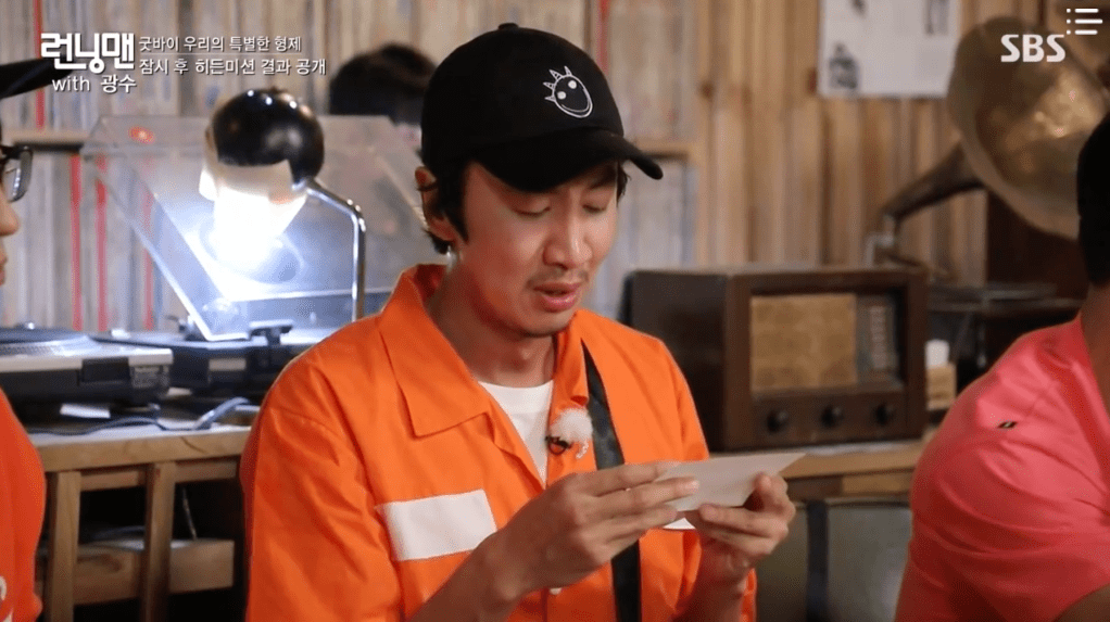 Speaking of the Maknaes, it’s time for Ji-hyo, Se-chan, and Somin’s letters. Ji-hyo is up first so Kwang-soo reads her letter,