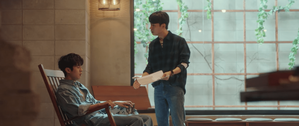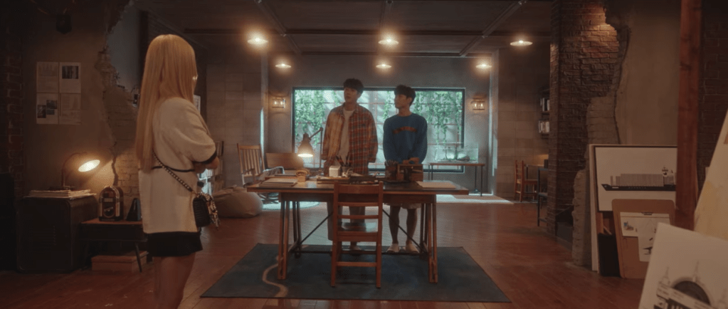 With Yeon-soo gone, Choi Woong and Eun-ho welcome NJ to his place and they give her a tour of Choi Woong’s studio. She proposes that he draw one of the buildings that she recently purchased. She likes hid drawings. Eun-ho is excited at the request, but Choi Woong hesitates with the ask. He seems a bit distracted and he doesn’t accept the challenge right away.