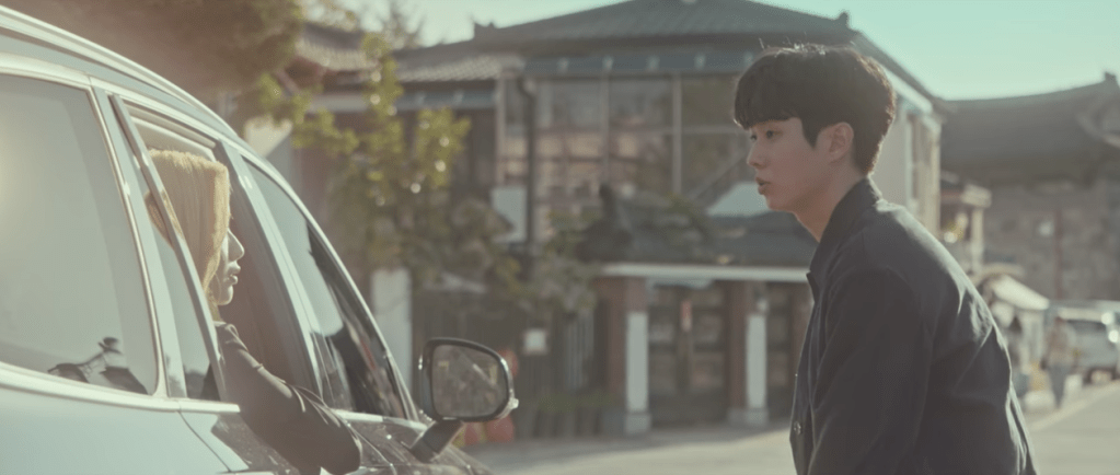 While walking home, Choi Woong comes across NJ as she pulls over in her car to talk to him. She was curious as to why he never replied back to her text even though he read it. Choi Woong’s a bit confused and shocked to see her in his neighborhood; she is an idol with a busy schedule after all. But for Choi Woong, she’ll make the time and she heads back for her schedule after checking up on him. Sigh.