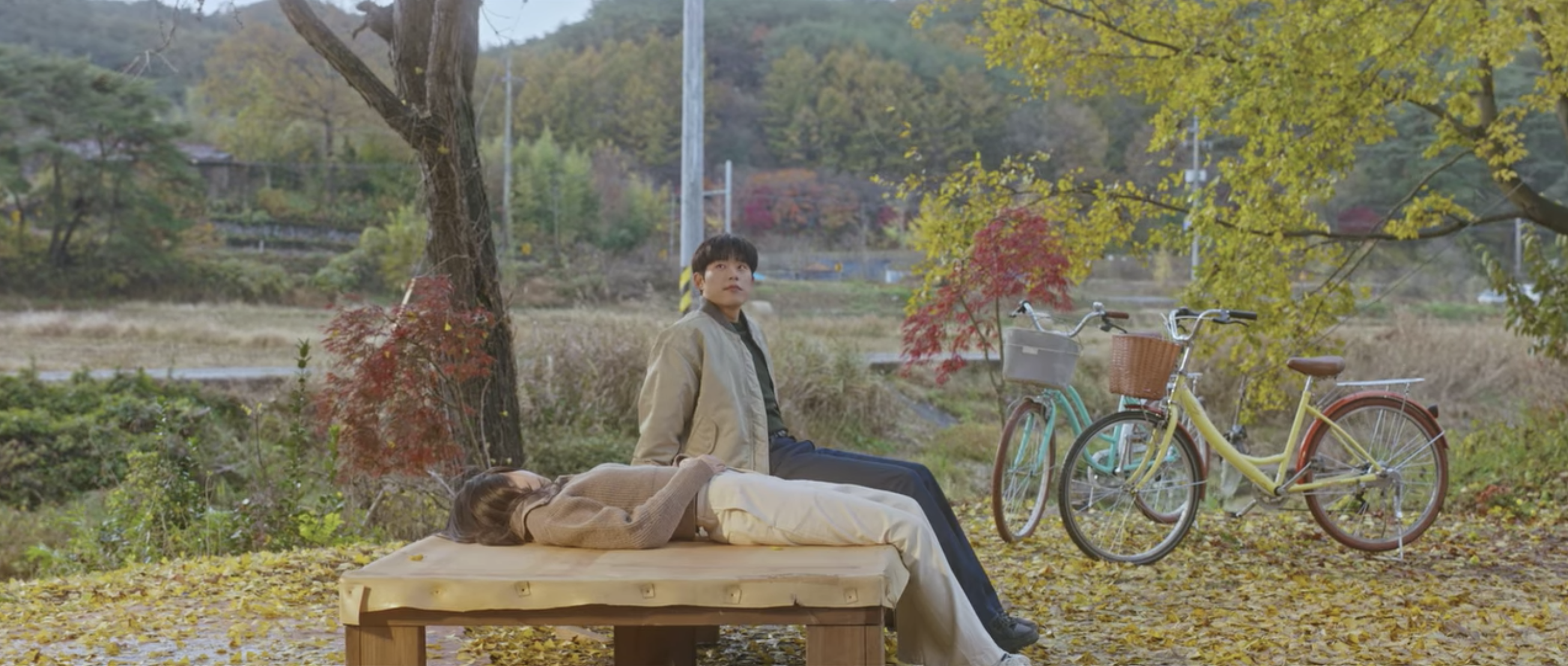 Ji-woong and Yeon-soo take a break from their bike rides at a small table in the village. She recites yet another small detail about Ji-woong that impresses him: his participation in the track and field team. That could explain for why he has such great energy and stamina. Eventually, Yeon-soo closes her eyes for a short nap while Ji-woong is approached by two Ahjumma ladies in the village. He chats with them for a bit and is recommended to visit a nearby hill that has amazing scenery during sunset. He can go with his girlfriend (laying down next to him). Ji-woong plays along with the two ladies and doesn’t correct them about Yeon-soo. It’s not until Yeon-soo wakes up right afterwards that she checks up on the whole girlfriend thing. Yeon-soo isn’t bothered by how Ji-woong stayed silent. He didn’t feel the need to correct them and she was okay with that.