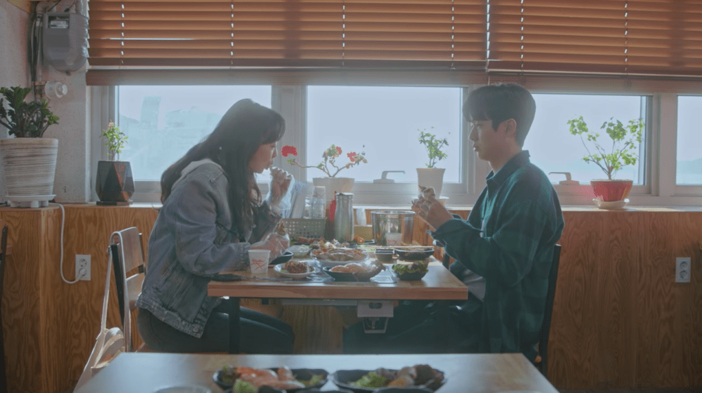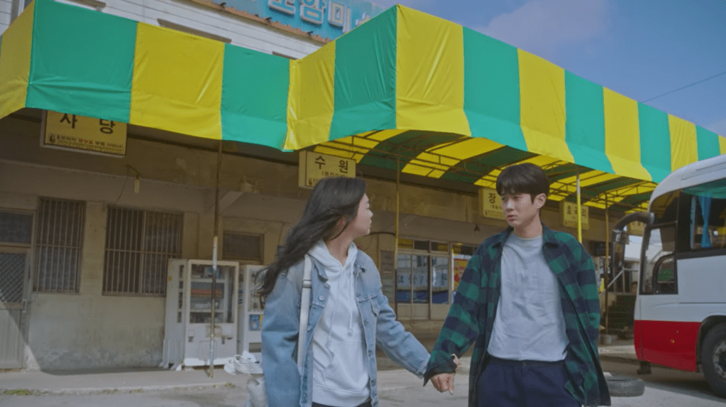 Choi Woong’s also worried about their future together and the trip doesn’t help him alleviate any doubts or concerns he has. While waiting at the bus station to head back home for the day, Yeon-soo catches Choi Woong dozing off in his seat. She gently presses his glabella to wake him up and adds for them to go on a much longer trip next time. She barely has time at the moment with all her part-time jobs so they can aim for a longer and further trip away next time. Choi Woong is shocked at Yeon-soo’s words, but there’s a sense of relief that also washes over him. She doesn’t want to break up with him. He’s still in her future.
