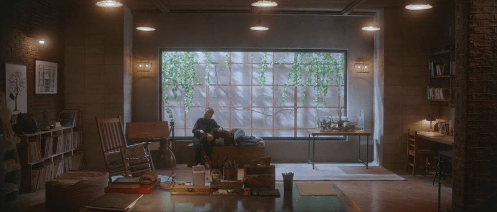 He sure is taking a break from work since he’s sick. Choi Woong wakes up after suffering a nightmare where he’s a lonely and abandoned and scared little kid on a busy sidewalk (ahh yes, it’s not a k-drama if the male lead doesn’t have some kind of childhood trauma). When he finally steps out into his living room after what appears to be forever, he discovers Mom sitting by the window at his studio. She feels guilty for not having been there for Choi Woong whether as a little kid or as an adult with a successful drawing career, but Choi Woong isn’t resentful. He’s used to it. But what he’s not used to is being alone after having been with someone. That’s not something he wants to experience a second time around.