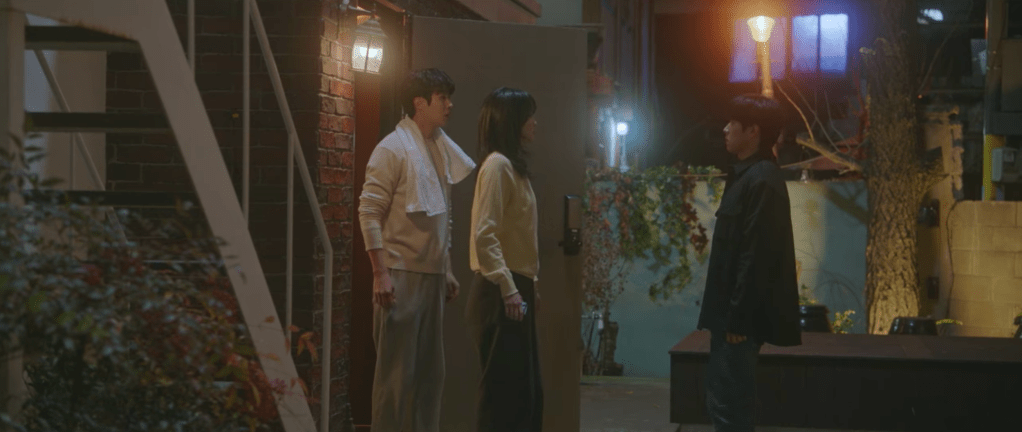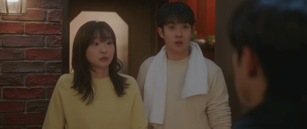 While out in the dining area, Yeon-soo answers the door that rang from outside. Choi Woong catches up to her and the two greet none other than their mutual friend, Ji-woong. Ji-woong didn’t want to go home to his mom so he opted for Choi Woong’s house instead. The three are in shock at the sight of one another and everyone’s unsure of what to say. Choi Woong warned Yeon-soo earlier not to steal his friend, Ji-woong, away from him, but Ji-woong isn’t so sure what to make of the sight he’s seeing himself at the moment. Why is Yeon-soo and Choi Woong together at Choi Woong’s house? Are the two really just friends or are they more?