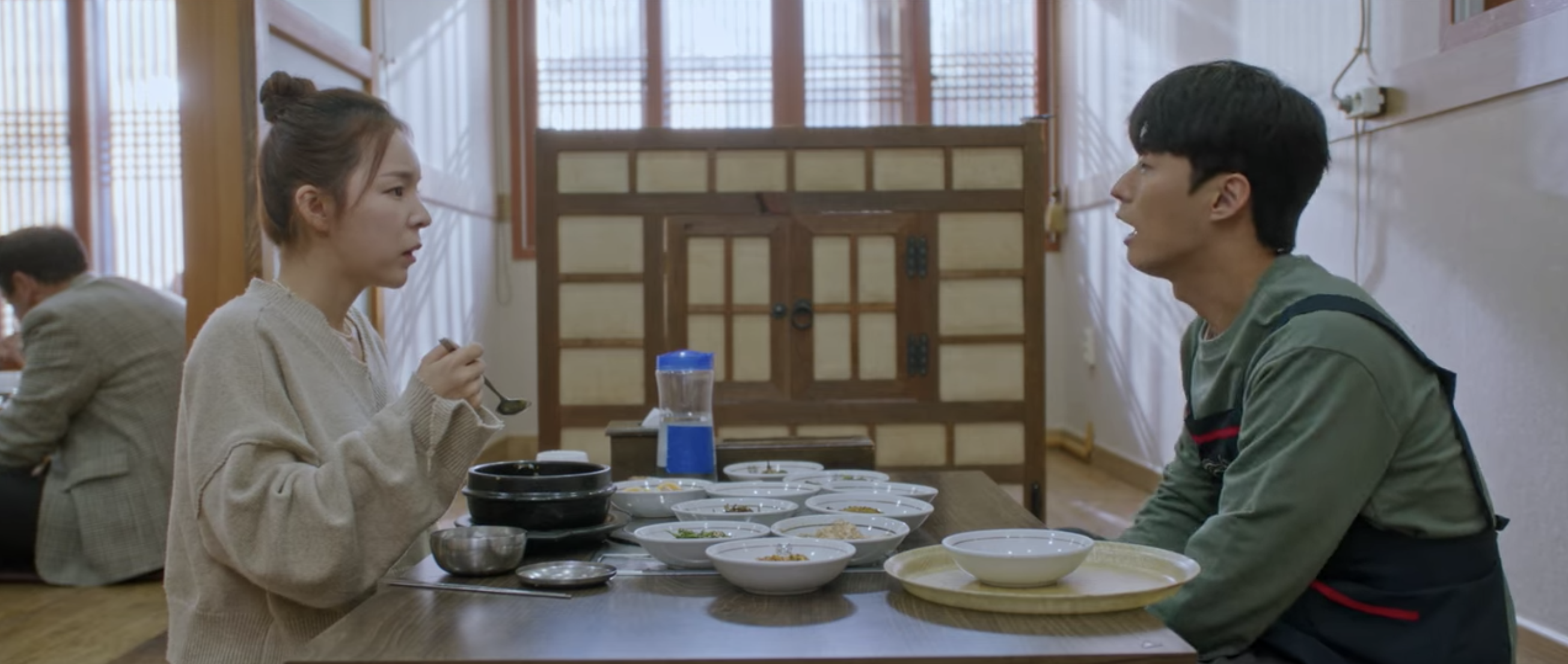 Just when Yeon-soo is close to expressing her feelings, Grandma interrupts to see who it is that’s at the door. That leaves Choi Woong with no choice but to join Yeon-soo and Grandma for dinner. Although she invited Choi Woong inside for dinner, it’s pretty obvious that Grandma disapproves of the artist. She’s snappy and upset with him. She can’t seem to understand how Yeon-soo could be friends with an ex. Ji-woong is a much better match for Yeon-soo than Choi Woong, anyways. Choi Woong is barely given the chance to talk and he continues to stay silent when Grandma comments how she doesn’t like him since he made Yeon-soo cry. Choi Woong doesn’t respond and proceeds to eating Yeon-soo’s soup before leaving. He should still eat at least. Even with Grandma’s snarky attitude, she encourages Choi Woong to eat some of the side dishes. Omg, I’m going to cryyyy.