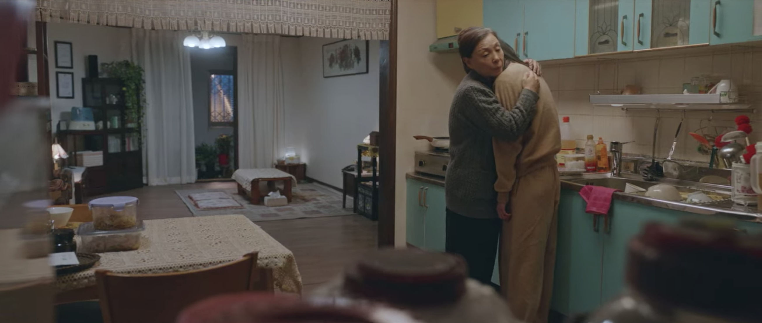 When Yeon-soo returns inside the house, she hides her embarrassment by washing the dishes and turning away from Grandma. Grandma still hasn’t forgiven Choi Woong for all the times he’s made Yeon-soo cry. Maybe she should have been harsher to Choi Woong when he visited earlier for dinner. Yeon-soo stays silent for a few seconds and turns off the sink water. Yeon-soo stays honest with Grandma. She was the one who broke up with Choi Woong. She was selfish and abandoned him. But she still has feelings for him and she doesn’t want to be just friends with him. So instead of scolding Choi Woong, Grandma should scold Yeon-soo and be mean to her. Grandma embraces her granddaughter as Yeon-soo cries on her shoulder.