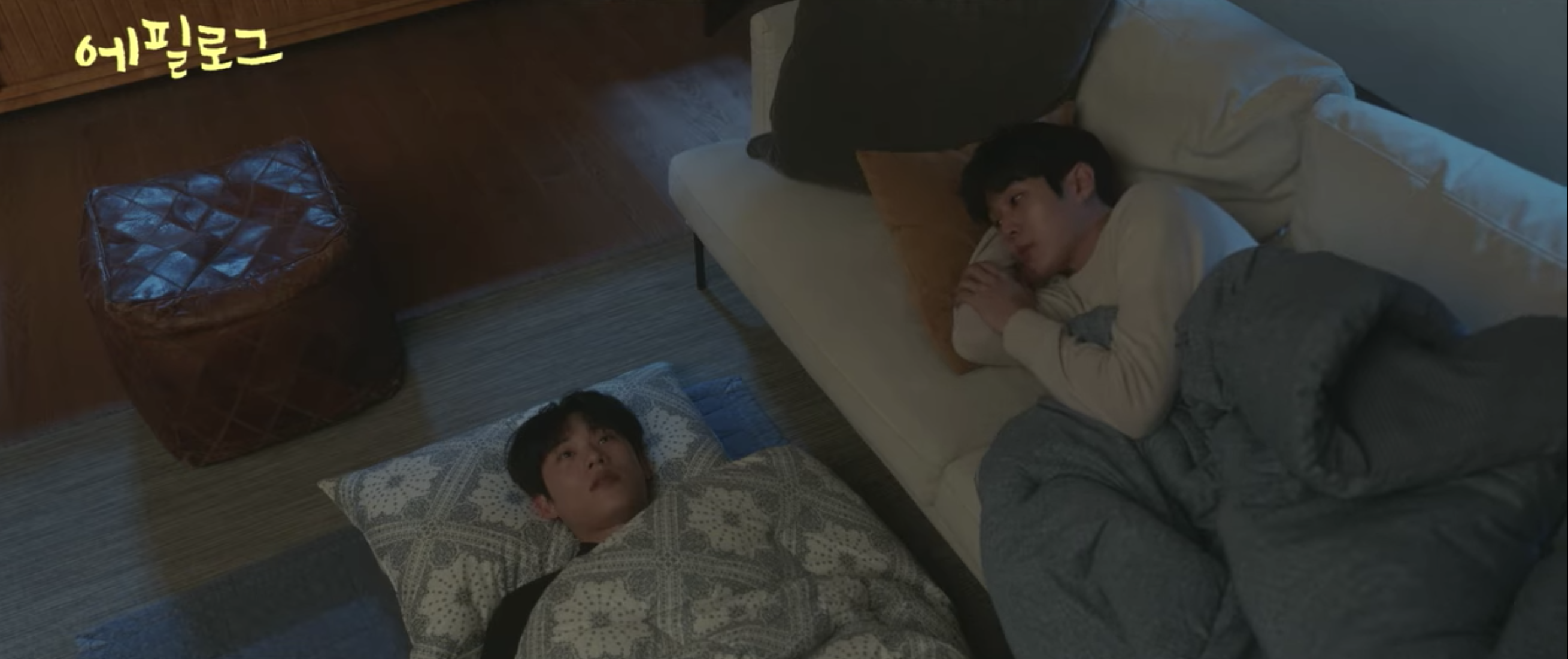 It’s November 2010. High school Ji-woong watches solemnly as his mother walks away from him with her luggage. Choi Woong approaches his childhood friend and though he’s clueless, he allows Ji-woong to sleep over at his house that night. Eventually, the tradition continues and the two continue to host sleepovers all throughout college. Fast forward to the present and it’s still the same. Ji-woong stays over for the night and rants to his childhood friend about his mother’s sudden appearance once again. She does this all the time. She acts like she’s going to stay with him, but both he and she knows that’s it’s not true. She’ll leave just like how she’s done all the other times. Choi Woong listens to his friend open up – no judgement and no comments. He lays on the couch and listens to Ji-woong with an open mind, an open heart, and with open ears. They are soulmates, indeed.