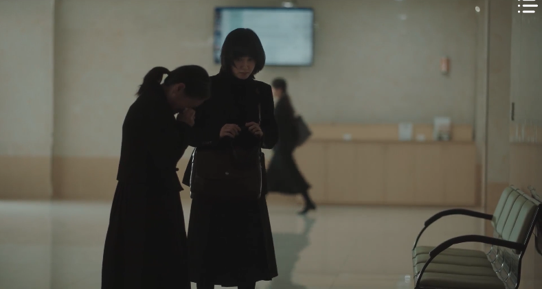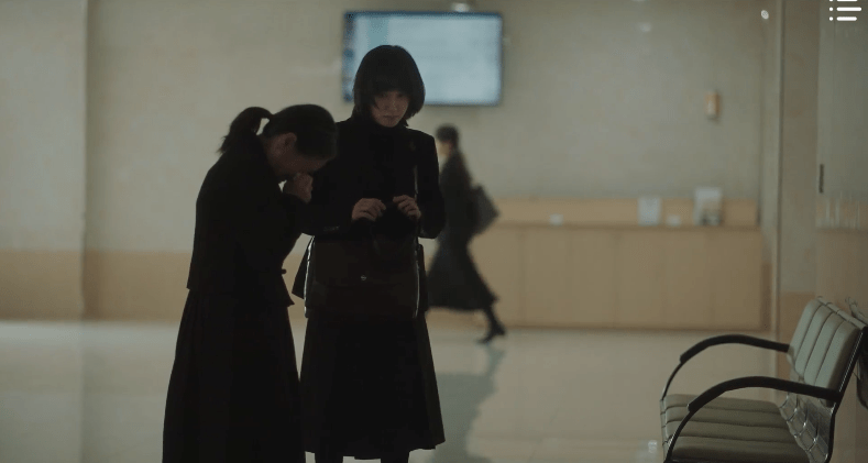 At the funeral for Mr. park, Young-woo can’t help but feel guilty. She feels as if she was the reason as to why he died. If she didn’t question him, maybe this wouldn’t have happened. Or maybe if she just didn’t take on this case, things would have been different. In an intimate and raw conversation with Ms. Choi, Young-woo apologizes. She was greedy and wanted to do well since this was her first case. She feels responsible for the death of Mr. Park and apologizes to Ms. Choi, but Ms. Choi feels otherwise. It’s not Young-woo’s fault; she and her husband both made mistakes. As Ms. Choi cries over the tragic situation, Young-woo inches closer towards her and wishes to comfort her.