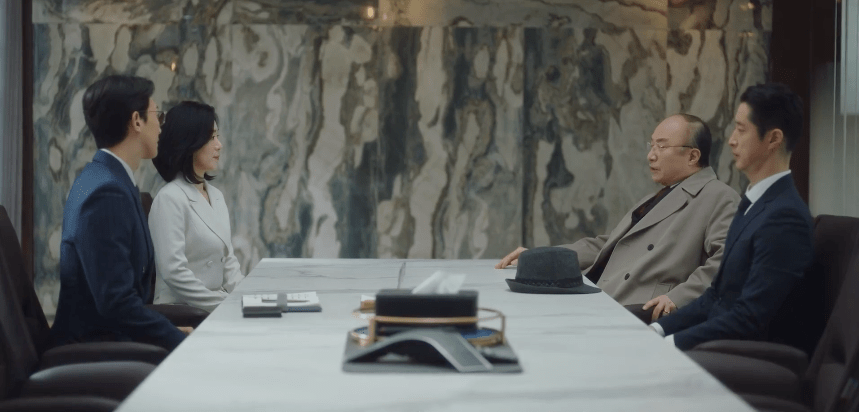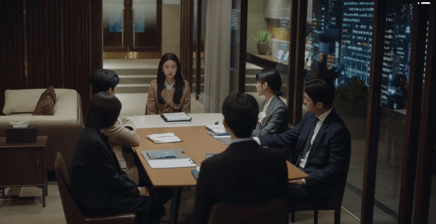 CEO Han and the team meet with Hwa-young and her father in a follow-up meeting to discuss the updates to the case. Now that they know about the promised gift of land, they can demand compensation according to the value of that property of land (which is definitely over a billion won). Hwa-young’s father is elated and excited at the news; this definitely makes Hanbada different. But Hwa-young doesn’t feel so good about the lawsuit. In fact, she speaks up and advocates for herself. This is her case so her opinion is important and she wishes that her father not take advantage of the incident for his own selfish reasons. But her father can care less about her feelings and wishes to proceed with the lawsuit. The meeting eventually concludes and everyone exits the room, leaving Hwa-young behind by herself.