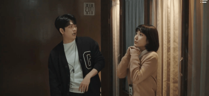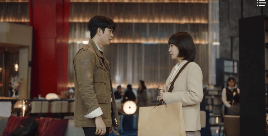 So with that, Soo-yeon heads back into the restroom stall while Young-woo heads back out to the lobby to reunite with Jun-ho. Without disclosing any details, Young-woo shares that she and Jun-ho will have to call each other “sweetie” now. Jun-ho isn’t so sure what to make of the situation, but since they are on a secret mission, they hurry for their appointment with the team director of the wedding business team at the hotel.