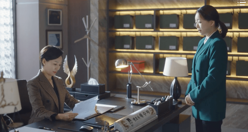 The CEO of Taesan Law Firm, Tae Soo-mi, gives an interview with a journalist and shares her plans of stepping down as the CEO to return as an attorney. After the interview concludes, she receives an update from her staff on Mr. Kim’s lawsuit against Daehyeon Hotel. After scanning through the Statement of Opinion, CEO Tae is quite impressed with Hanbada’s work on the case and how they managed to actually do something that her law firm couldn’t do. Perhaps the most impressive thing on the document is the name of the attorney who played a crucial role in the success and results of the lawsuit: Attorney Woo Young-woo. Extraordinary she is, indeed.