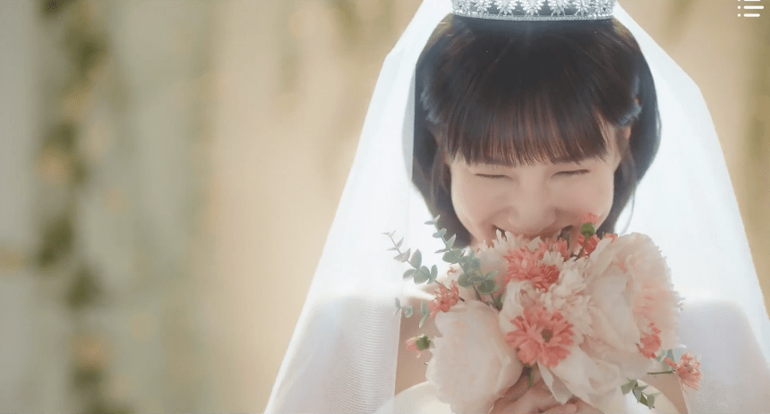 The curtains slide open to unveil Young-woo with the white gown on and a bouquet of flowers in her hands. She’s beautiful and stunning and Jun-ho is at a loss for words. He’s speechless. He has no words to describe this moment and Young-woo’s appearance in the wedding dress (Siri, play ‘Wedding Dress’ by Taeyang). It’s as if the young man has fallen in love in which Young-woo smiles shyly in response. Jun-ho? In love with Young-woo? Maybe Young-woo feels the same way too (*blushes*).